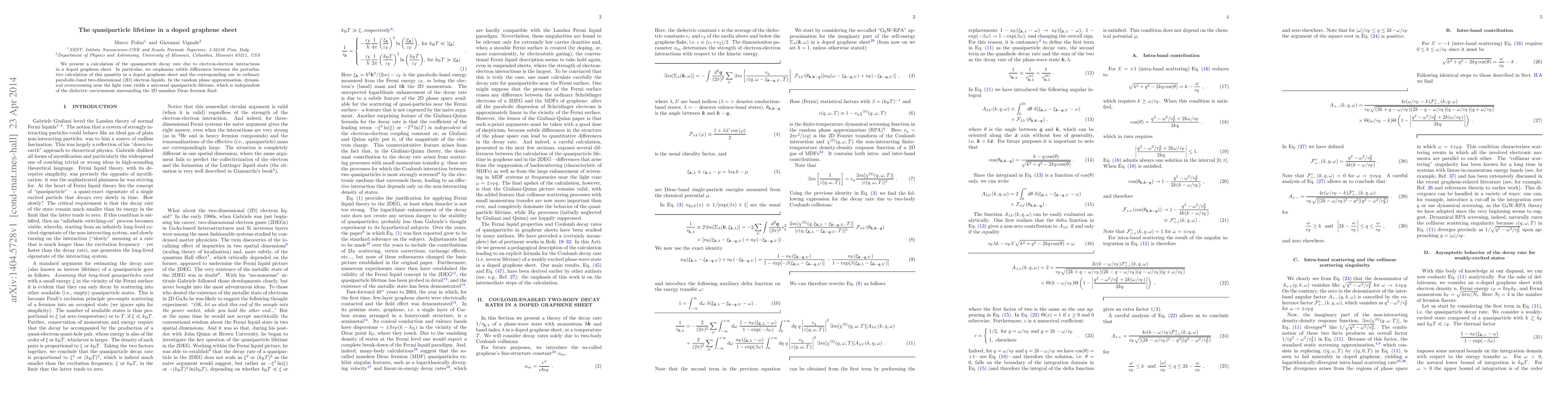 The paper introduces a detailed calculation method for quasiparticle decay rate in doped graphene, emphasizing the role of electron-electron interactions and dielectric environment, and demonstrates the universal nature of the quasiparticle lifetime near the light cone.