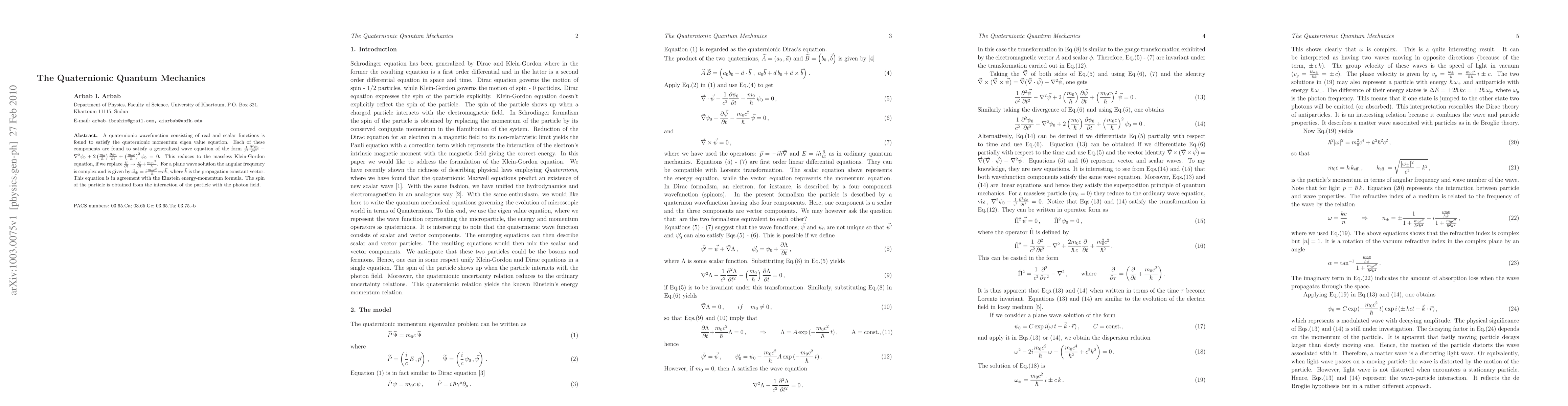 Researchers developed a quaternionic quantum mechanics framework that satisfies the momentum eigenvalue equation, yielding a massless Klein-Gordon equation and complex angular frequency consistent with Einstein's energy-momentum formula.