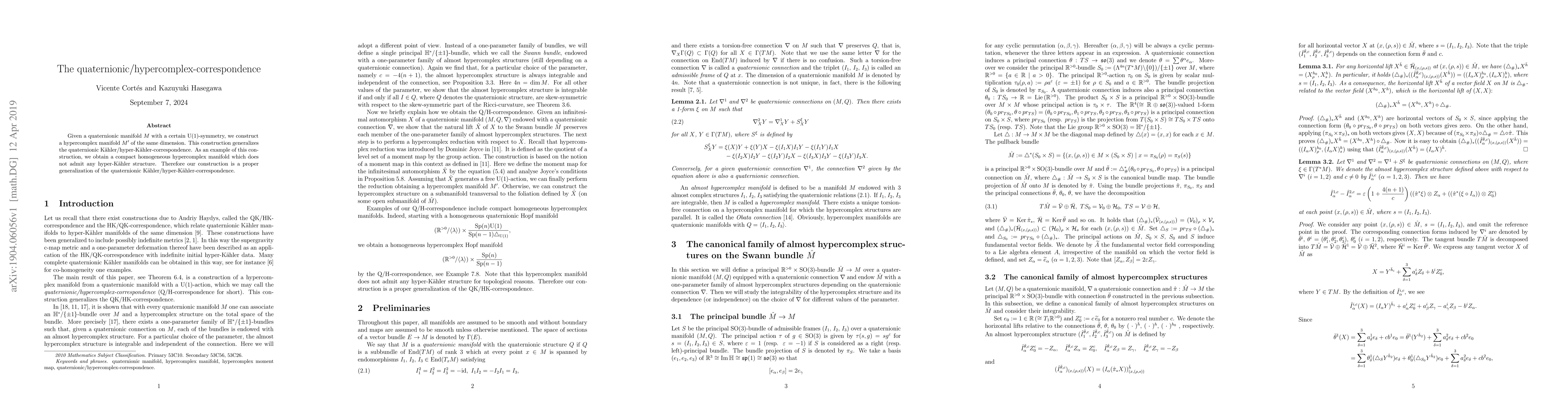 This paper constructs a hypercomplex manifold $M'$ from a quaternionic manifold $M$ with $\mathrm{U}(1)$-symmetry, generalizing the quaternionic Kähler/hyper-Kähler correspondence. An example provided is a compact homogeneous hypercomplex manifold that lacks hyper-Kähler structure, demonstrating the construction's broader applicability.