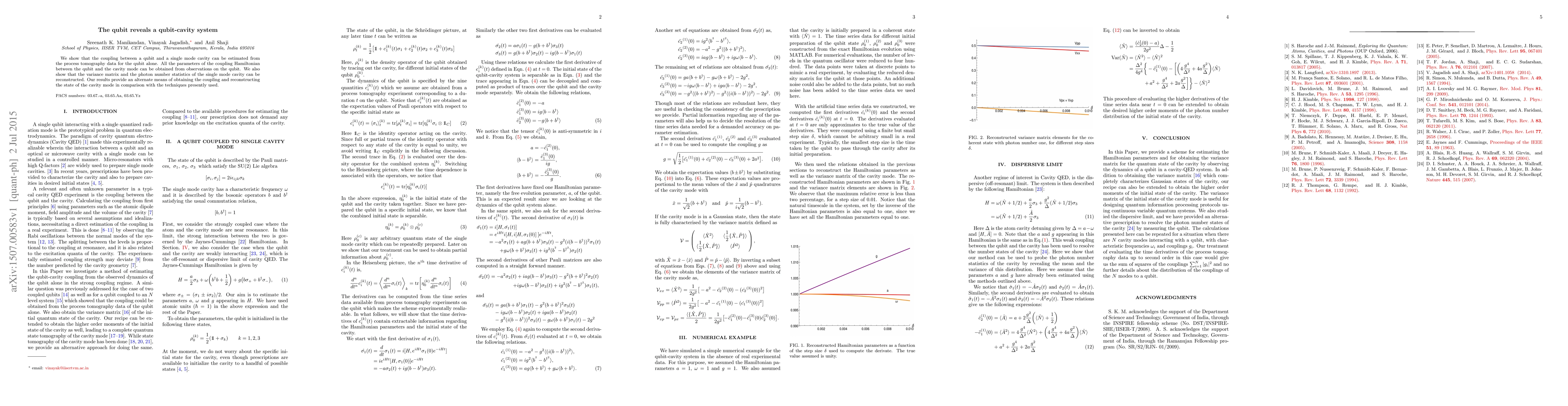 The paper presents a theoretical framework for extracting cavity parameters and reconstructing its state from qubit dynamics, utilizing first and second time derivatives of qubit observables.