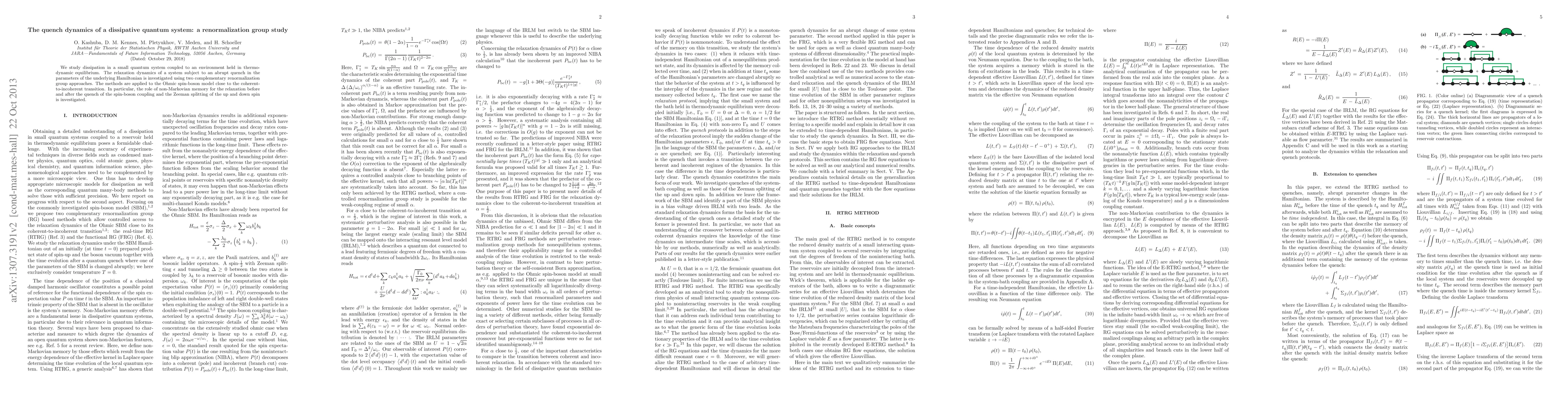 We study dissipation in a small quantum system coupled to an environment held in thermodynamic equilibrium. The relaxation dynamics of a system subject to an abrupt quench in the parameters of the underlying Hamiltonian is investigated using two complementary renormalization group approaches. The methods are applied to the Ohmic spin-boson model close to the coherent-to-incoherent transition. In particular, the role of non-Markovian memory for the relaxation before and after the quench of the spin-boson coupling and the Zeeman splitting of the up and down spin is investigated.