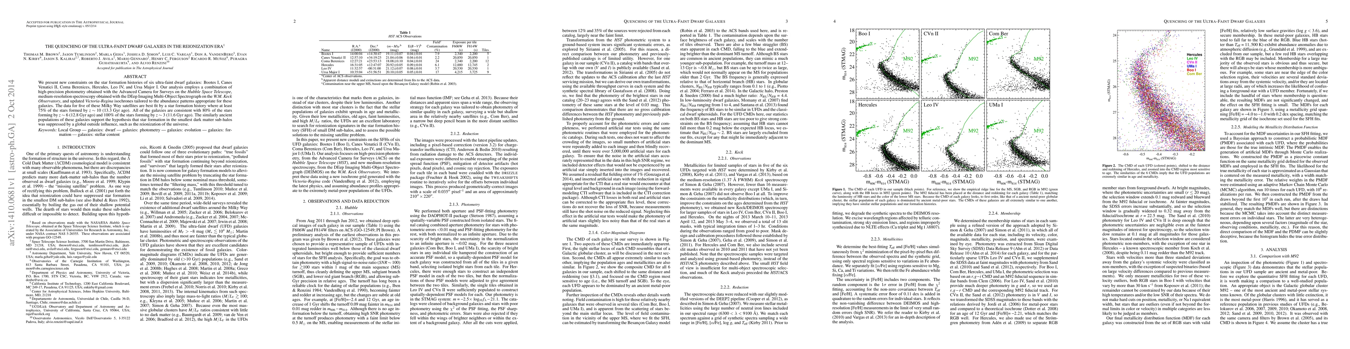 This study uses advanced Hubble and Keck Observatory data to analyze the star formation histories of six ultra-faint dwarf galaxies, finding that at least 75% of their stars formed by z~10, supporting the hypothesis that reionization suppressed star formation in small dark matter sub-halos.