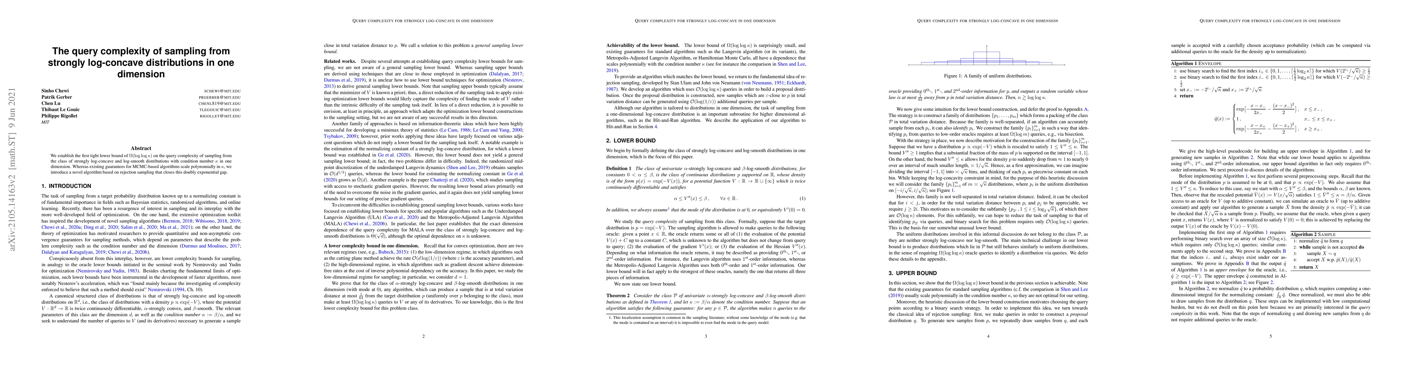 The paper establishes a tight lower bound of $\Omega(\log\log\kappa)$ for sampling from strongly log-concave distributions in one dimension, introducing a novel rejection sampling algorithm that closes the previously existing doubly exponential gap in query complexity relative to condition number $\kappa$.