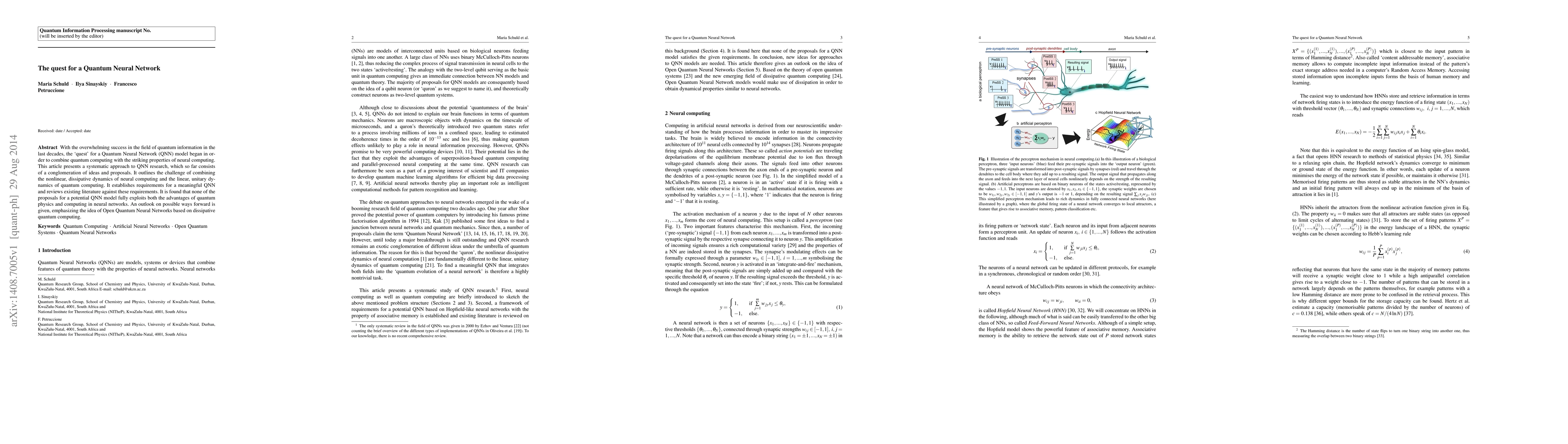 With the overwhelming success in the field of quantum information in the last decades, the "quest" for a Quantum Neural Network (QNN) model began in order to combine quantum computing with the striking properties of neural computing. This article presents a systematic approach to QNN research, which so far consists of a conglomeration of ideas and proposals. It outlines the challenge of combining the nonlinear, dissipative dynamics of neural computing and the linear, unitary dynamics of quantum computing. It establishes requirements for a meaningful QNN and reviews existing literature against these requirements. It is found that none of the proposals for a potential QNN model fully exploits both the advantages of quantum physics and computing in neural networks. An outlook on possible ways forward is given, emphasizing the idea of Open Quantum Neural Networks based on dissipative quantum computing.