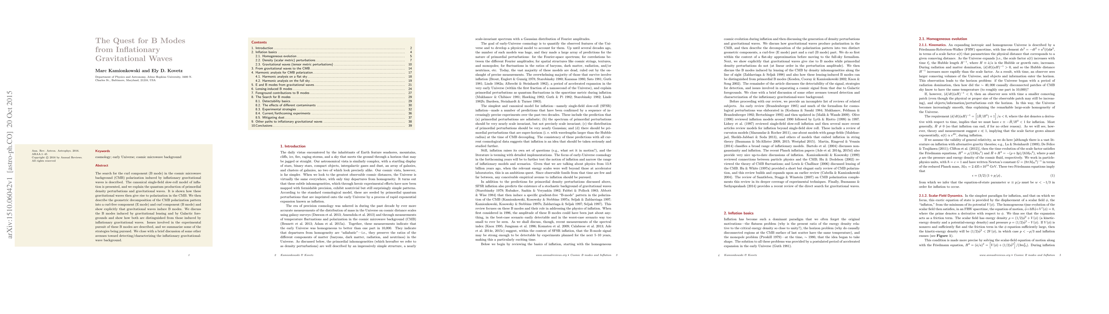 This paper explores the search for B mode polarization in the cosmic microwave background (CMB) as evidence of inflationary gravitational waves, detailing the theoretical framework and experimental strategies for detection amidst lensing and foreground noise. It also discusses alternative methods for characterizing the inflationary gravitational-wave background.