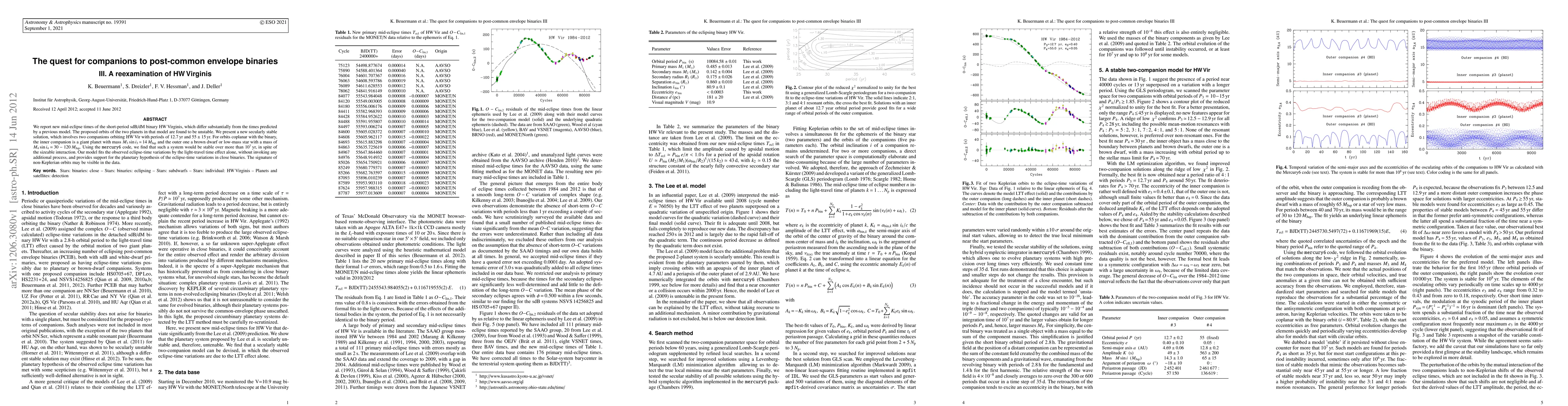 We report new mid-eclipse times of the short-period sdB/dM binary HW Vir, which differ substantially from the times predicted by a previous model. The proposed orbits of the two planets in that model are found to be unstable. We present a new secularly stable solution, which involves two companions orbiting HW VIr with periods of 12.7 yr and 55 +/-15 yr. For orbits coplanar with the binary, the inner companion is a giant planet with mass M_3 sin i_3 = 14 M_Jup and the outer one a brown dwarf or low-mass star with a mass of M_4 sin i_4 = 30-120 M_Jup. Using the mercury6 code, we find that such a system would be stable over more than 10^7 yr, in spite of the sizeable interaction. Our model fits the observed eclipse-time variations by the light-travel time effect alone, without invoking any additional process, thereby providing support for the planetary hypothesis of the eclipse-time variations in close binaries. The signature of non-Keplerian orbits may be visible in the data.