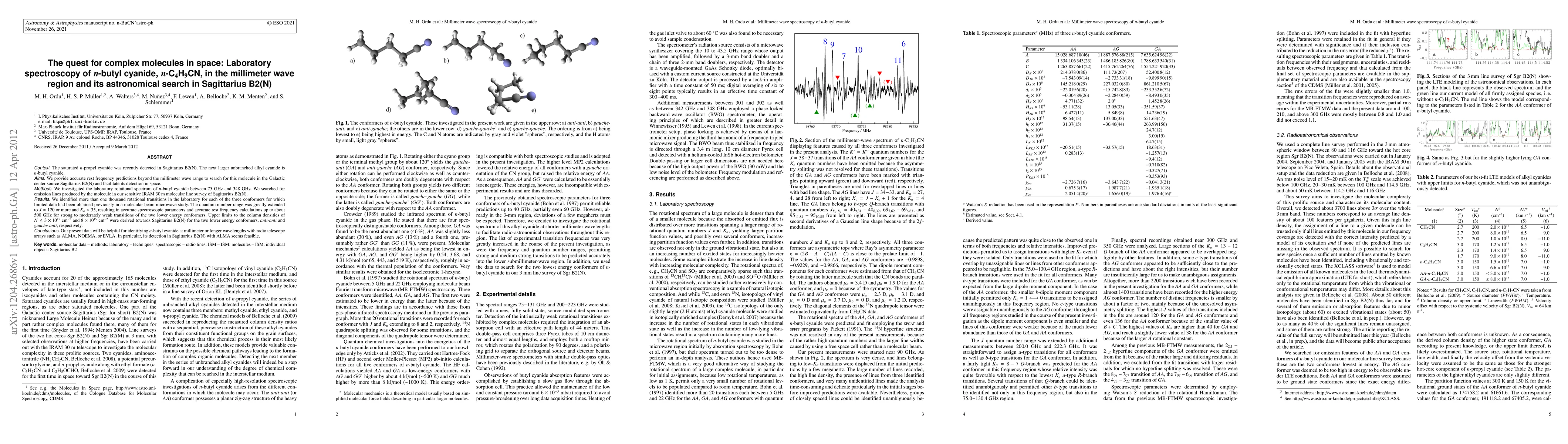 The saturated n-propyl cyanide was recently detected in Sagittarius B2(N). The next larger unbranched alkyl cyanide is n-butyl cyanide. We provide accurate rest frequency predictions beyond the millimeter wave range to search for this molecule in the Galactic center source Sagittarius B2(N) and facilitate its detection in space. We investigated the laboratory rotational spectrum of $n$-butyl cyanide between 75 GHz and 348 GHz. We searched for emission lines produced by the molecule in our sensitive IRAM 30 m molecular line survey of Sagittarius B2(N). We identified more than one thousand rotational transitions in the laboratory for each of the three conformers for which limited data had been obtained previously in a molecular beam microwave study. The quantum number range was greatly extended to J ~ 120 or more and Ka > 35, resulting in accurate spectroscopic parameters and accurate rest frequency calculations up to about 500 GHz for strong to moderately weak transitions of the two lower energy conformers. Upper limits to the column densities of N <= 3 x 10E15 cm-2 and 8 x 10E15 cm-2 were derived towards Sagittarius B2(N) for the two lower energy conformers, anti-anti and gauche-anti, respectively. Our present data will be helpful for identifying n-butyl cyanide at millimeter or longer wavelengths with radio telescope arrays such as ALMA, NOEMA, or EVLA. In particular, its detection in Sagittarius B2(N) with ALMA seems feasible.