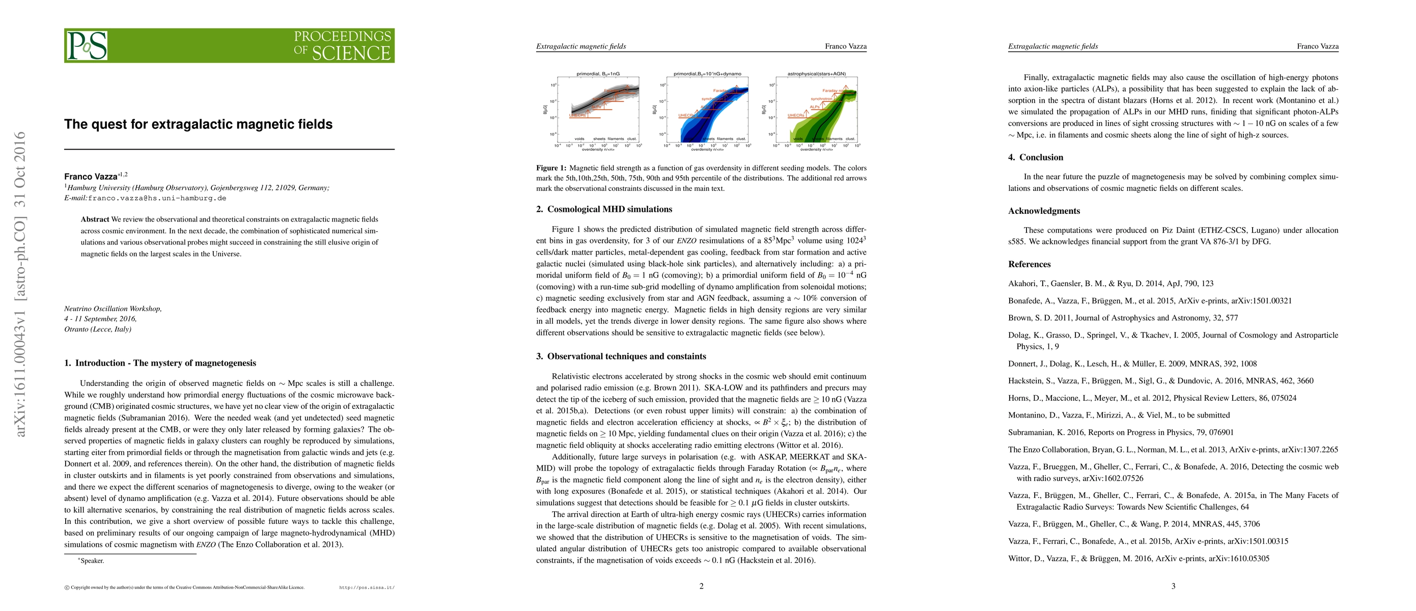 We review the observational and theoretical constraints on extragalactic magnetic fields across cosmic environment. In the next decade, the combination of sophisticated numerical simulations and various observational probes might succeed in constraining the still elusive origin of magnetic fields on the largest scales in the Universe.
