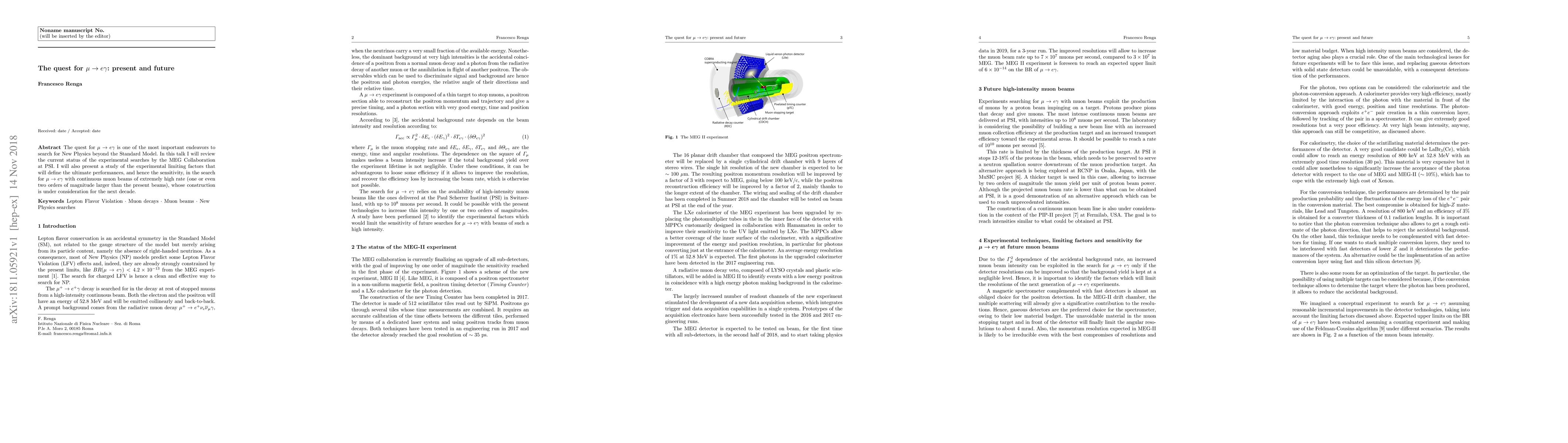 The quest for $\mu \to e \gamma$ is one of the most important endeavors to search for New Physics beyond the Standard Model. In this talk I will review the current status of the experimental searches by the MEG Collaboration at PSI. I will also present a study of the experimental limiting factors that will define the ultimate performances, and hence the sensitivity, in the search for $\mu \to e \gamma$ with continuous muon beams of extremely high rate (one or even two orders of magnitude larger than the present beams), whose construction is under consideration for the next decade.