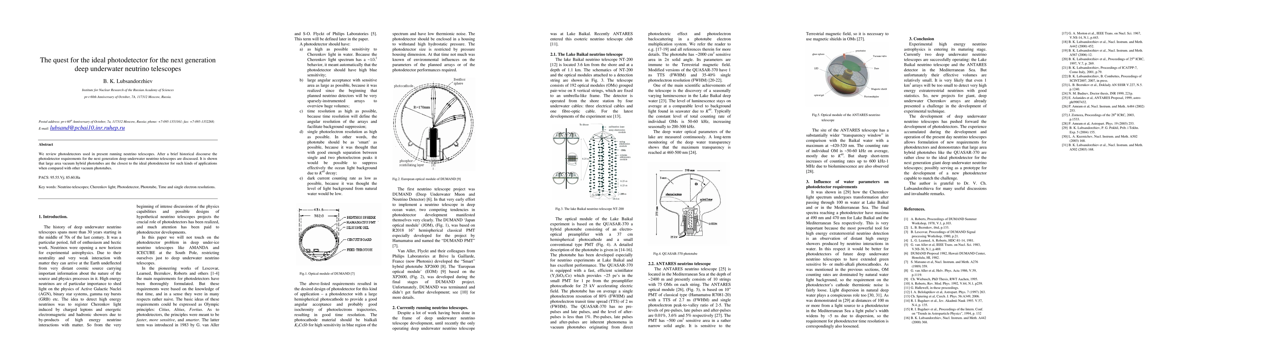 Summary: This paper reviews current photodetectors in neutrino telescopes and discusses the requirements for next-generation deep-underwater neutrino telescopes, concluding that large area vacuum hybrid phototubes are the most suitable candidates for these applications.