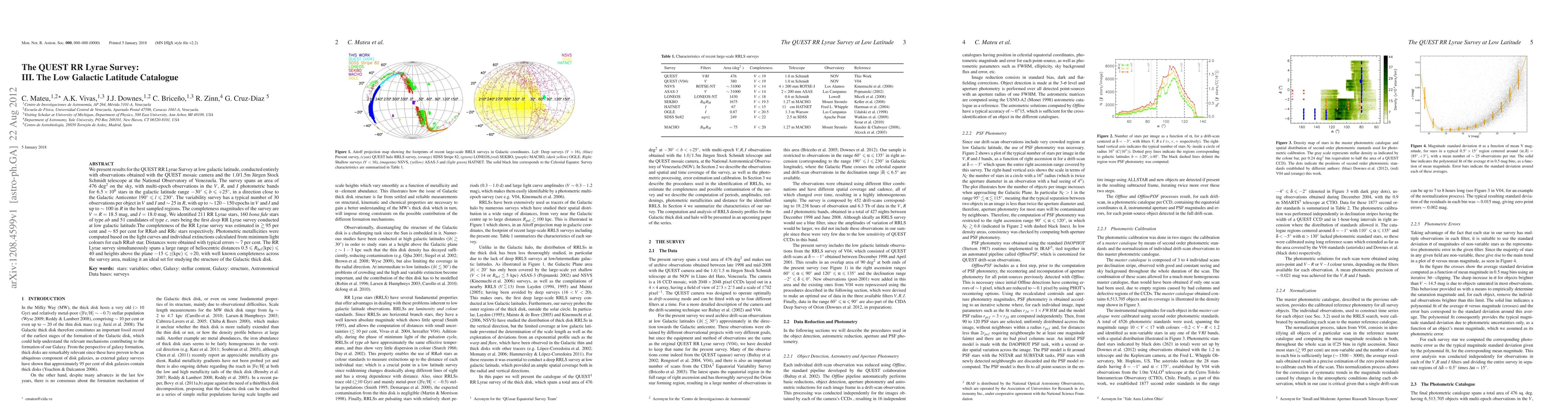 The QUEST RR Lyrae Survey at low galactic latitude identified 211 RR Lyrae stars, providing a comprehensive catalogue for studying the Galactic thick disk structure. The survey covers 476 sq. deg with high photometric completeness, enabling detailed analysis of stellar distances and metallicities.