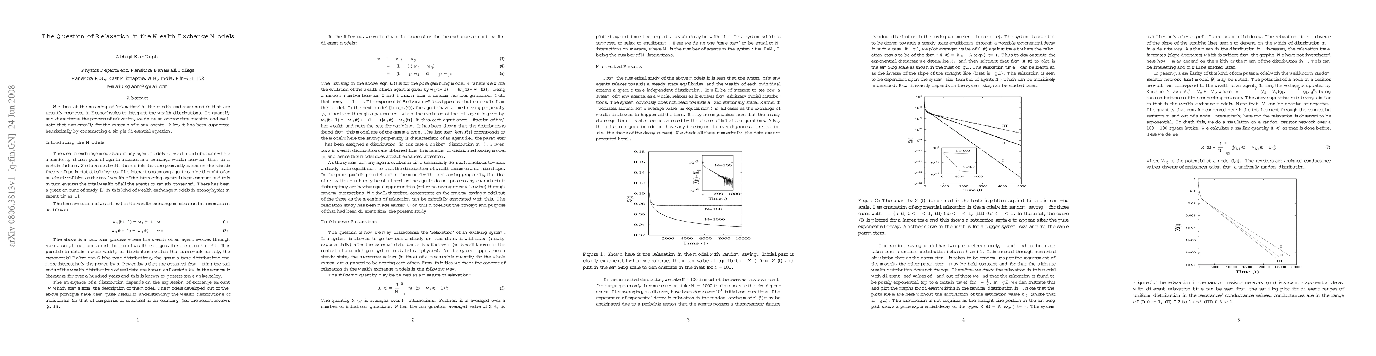 This paper investigates the concept of 'relaxation' in wealth exchange models used in Econophysics to understand wealth distributions. It defines a specific quantity to quantify relaxation and evaluates it numerically for systems with many agents, supported by a simple differential equation.