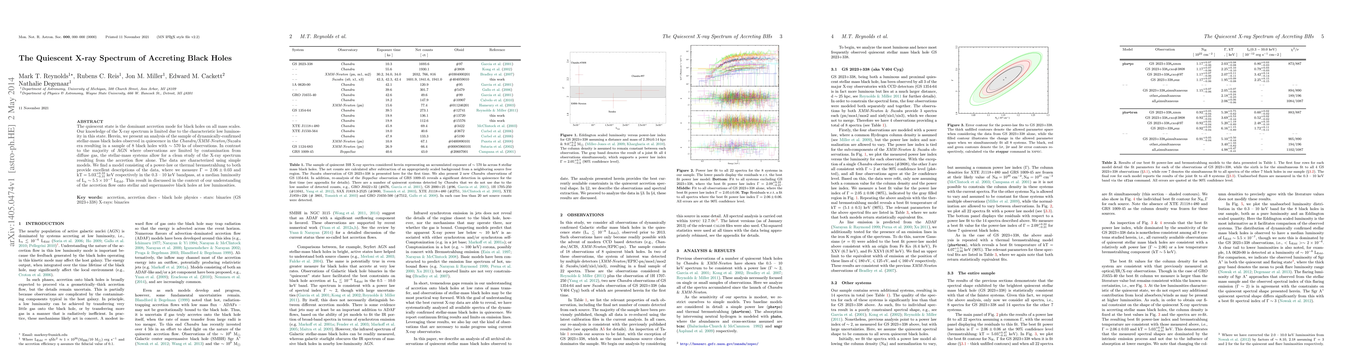 This paper analyzes the quiescent X-ray spectra of 8 stellar-mass black holes observed in quiescence, revealing a power-law or thermal bremsstrahlung model that fits the data well. The findings suggest a photon index $\rm \Gamma = 2.06 \pm 0.03$ and a temperature $\rm kT = 5.03^{+0.33}_{-0.31} keV$, providing insights into the accretion flow at low luminosities.