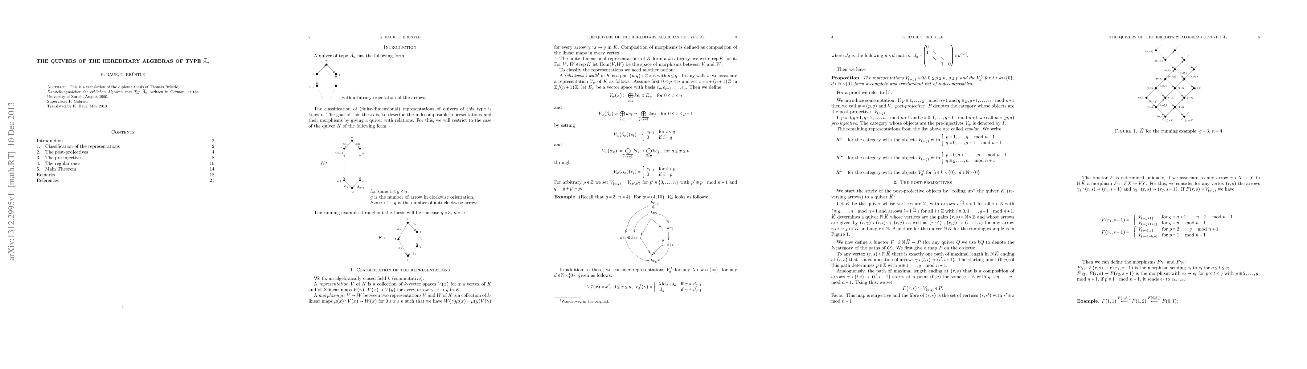 This paper explores the quivers of hereditary algebras of type $ ilde{A}_n$, a concept in representation theory that sheds light on the structure of these algebraic systems. The research provides insights into their properties and implications for understanding the behavior of these algebras.