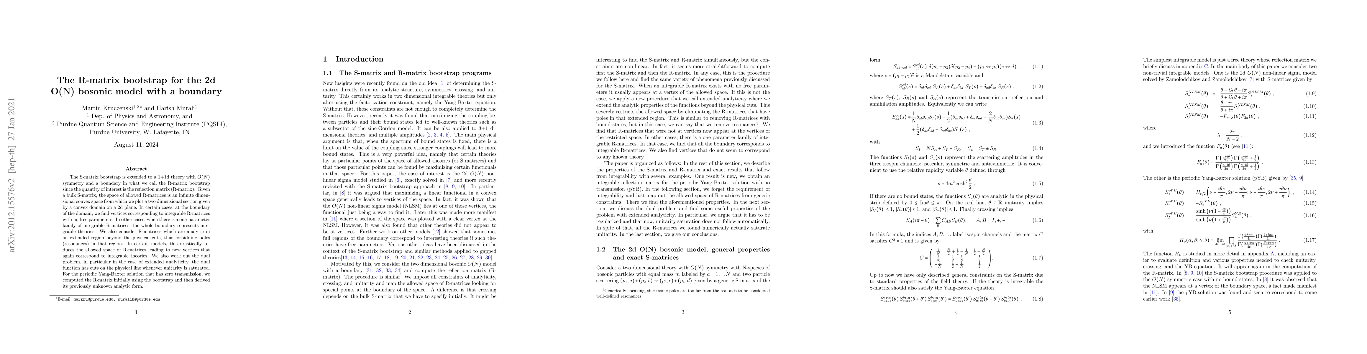 This paper extends the S-matrix bootstrap to a 1+1d O(N) model with a boundary, termed the R-matrix bootstrap, focusing on the reflection matrix. It identifies integrable R-matrices within an infinite-dimensional convex space, revealing vertices that correspond to parameter-free integrable theories.
