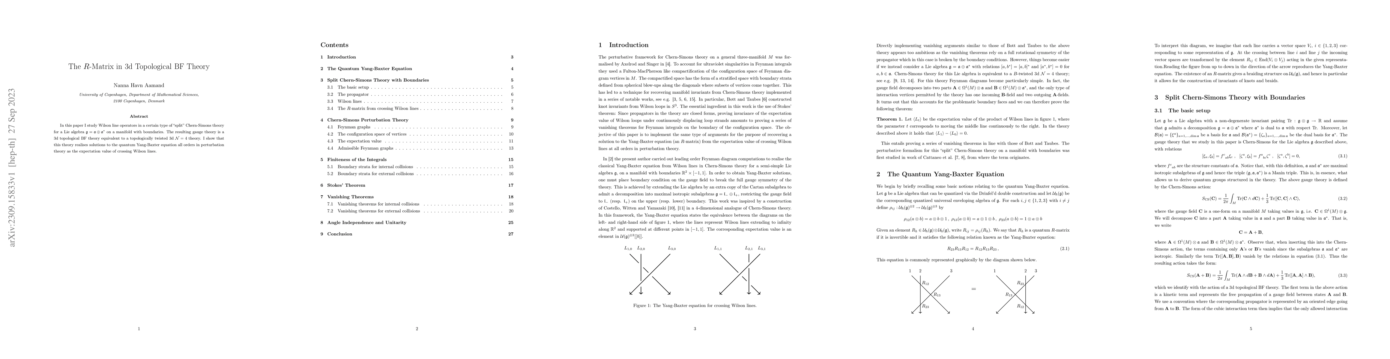 This paper investigates Wilson line operators in a 3d topological BF theory, demonstrating their equivalence to solutions of the quantum Yang-Baxter equation through the expectation value of crossing Wilson lines, derived from a split Chern-Simons theory.