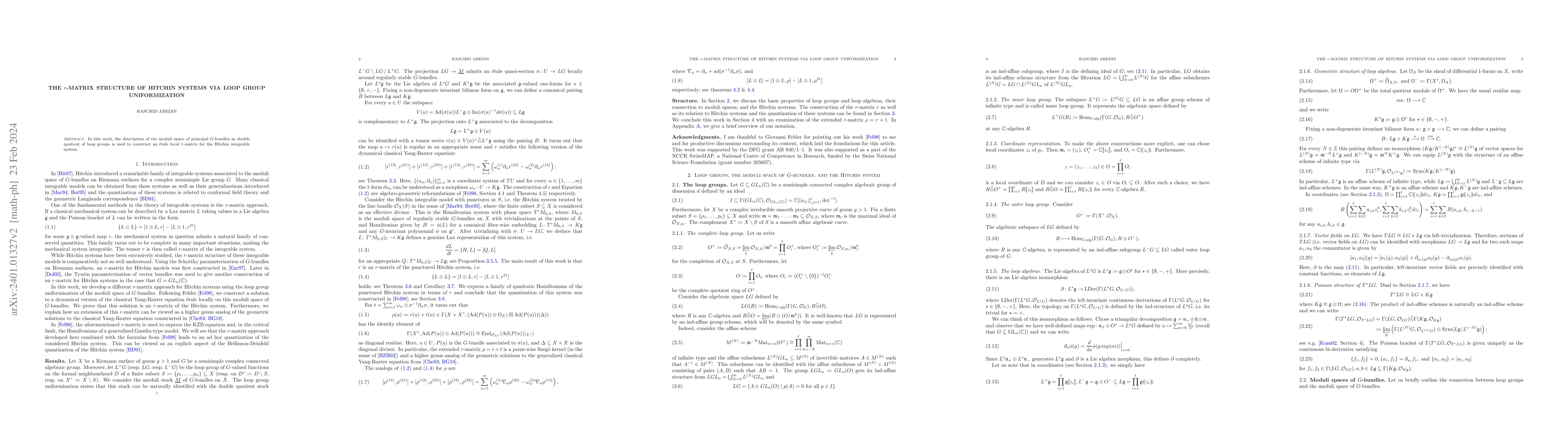 Summary: The paper constructs an étale local $r$-matrix for the Hitchin integrable system by employing the moduli space of principal $G$-bundles via loop group uniformization, utilizing the double quotient structure of loop groups.