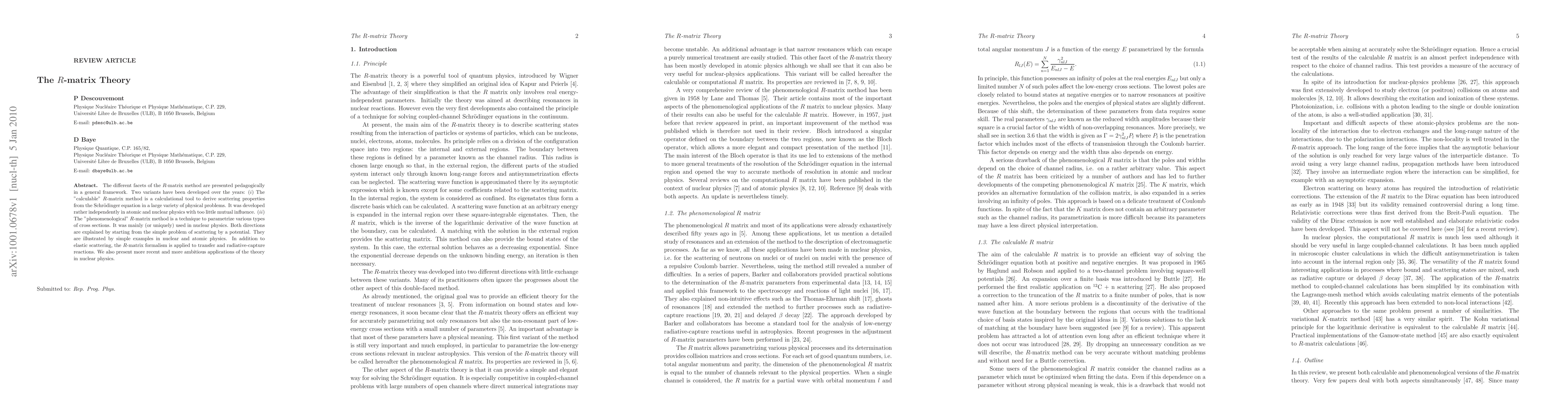 The R-matrix theory, presented in this paper, offers two variants: a 'calculable' method for deriving scattering properties from the Schrödinger equation across diverse physical problems, and a 'phenomenological' method for parametrizing cross sections, primarily in nuclear physics. Both methods are explained using simple scattering examples and extended to transfer and radiative-capture reactions, with recent nuclear physics applications also discussed.