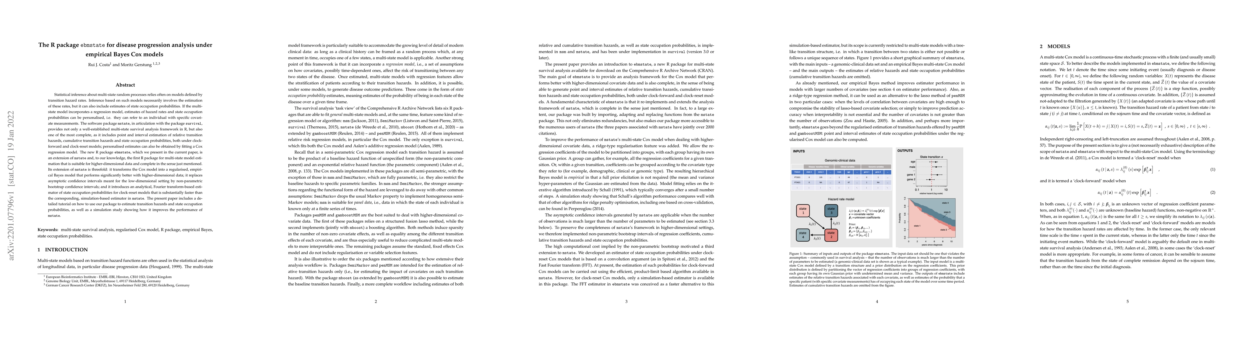 The R package $\texttt{ebmstate}$ extends the $\texttt{mstate}$ package for multi-state survival analysis, offering improved performance for higher-dimensional data through an empirical Bayes Cox model, non-parametric bootstrap confidence intervals, and a faster Fourier transform-based estimator for state occupation probabilities. The paper provides a tutorial and simulation study demonstrating its enhanced capabilities.