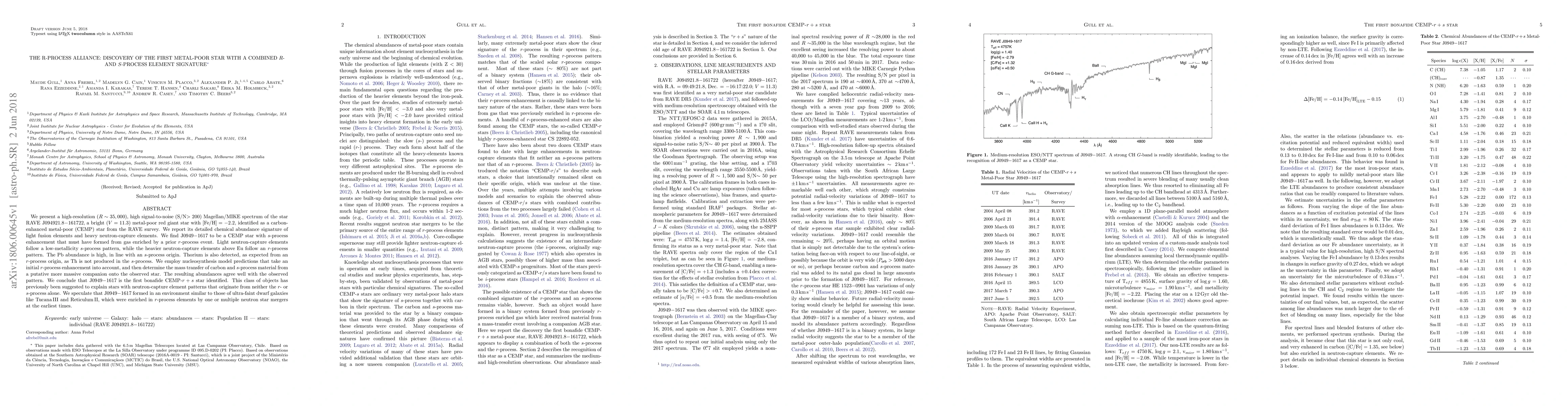 This paper identifies RAVE J094921.8-161722 as the first metal-poor star with both r- and s-process element signatures, indicating it formed from gas enriched by prior r-process events and underwent mass transfer from a companion star. The star's chemical abundance pattern supports this dual nucleosynthesis origin.