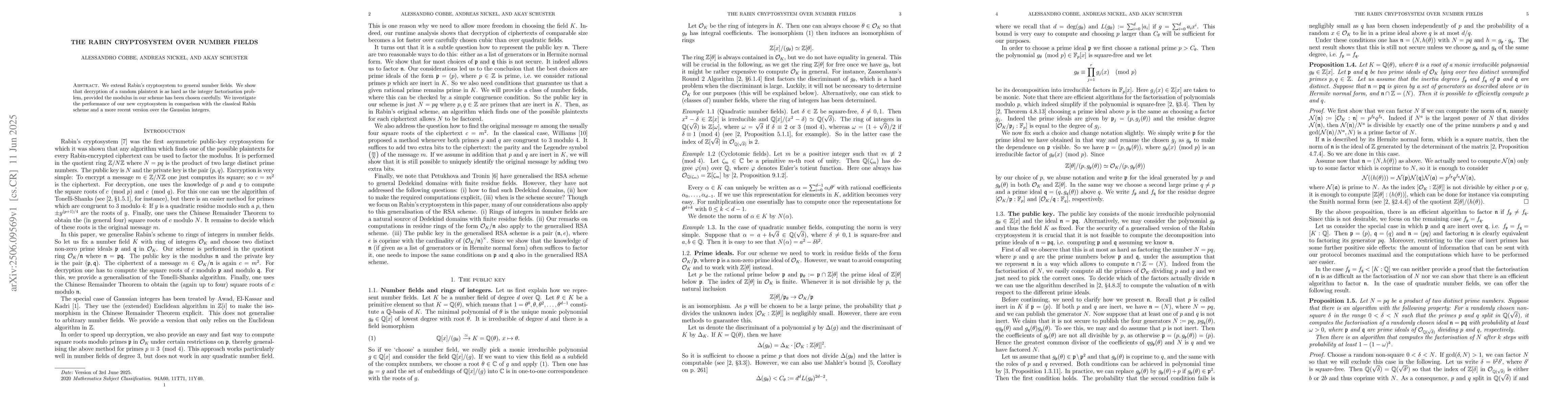 We extend Rabin's cryptosystem to general number fields. We show that decryption of a random plaintext is as hard as the integer factorisation problem, provided the modulus in our scheme has been chosen carefully. We investigate the performance of our new cryptosystem in comparison with the classical Rabin scheme and a more recent version over the Gaussian integers.