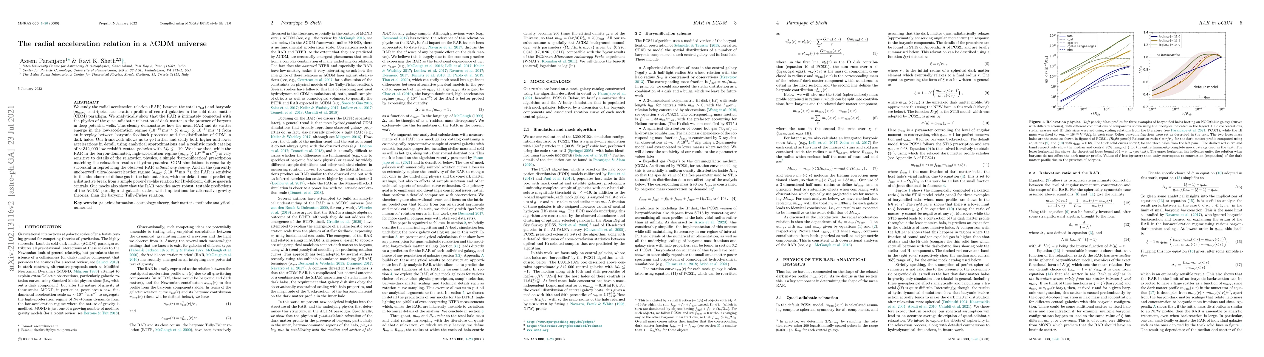 This paper explores the radial acceleration relation (RAR) in the $\Lambda$CDM universe, demonstrating its connection to the quasi-adiabatic relaxation of dark matter in deep potential wells. The study shows that the RAR emerges naturally from baryonic feedback and dark matter distribution, providing robust predictions for galactic scales and implications for alternative gravity theories.