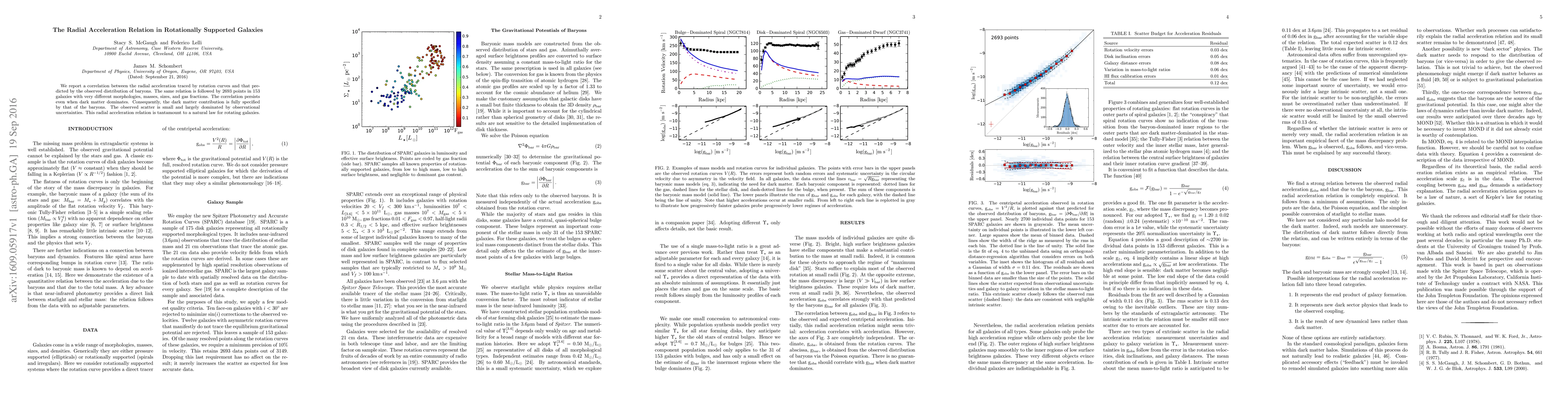 The paper establishes a consistent radial acceleration relation in galaxies, where the observed acceleration matches that predicted by baryonic matter, even when dark matter dominates. This correlation is robust across diverse galaxies, suggesting a fundamental law governing galactic rotation.