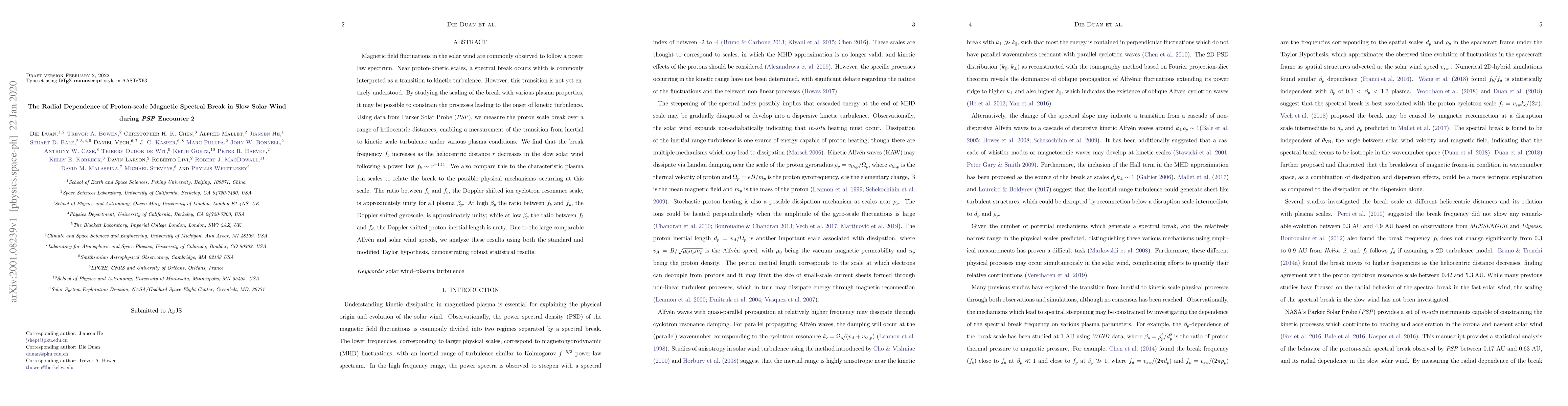 This study investigates the radial dependence of the proton-scale magnetic spectral break in the slow solar wind using Parker Solar Probe data, finding that the break frequency increases as heliocentric distance decreases, following a power law. The results suggest a transition from inertial to kinetic scale turbulence, with the break frequency correlating with characteristic plasma ion scales.