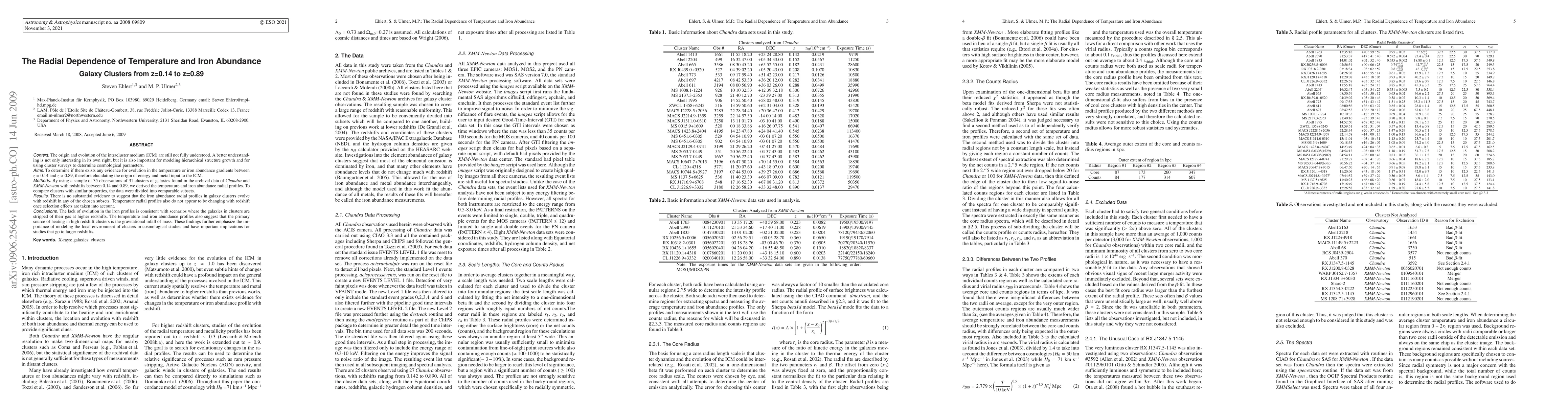 Using archival Chandra and XMM-Newton data on 35 galaxy clusters, we measured average temperature and metallicity profiles for clusters based separated by temperature, cooling time, and redshift. Our results show no evidence for significant changes in the metallicity or temperature profiles with redshift once these selection effects are taken into account.