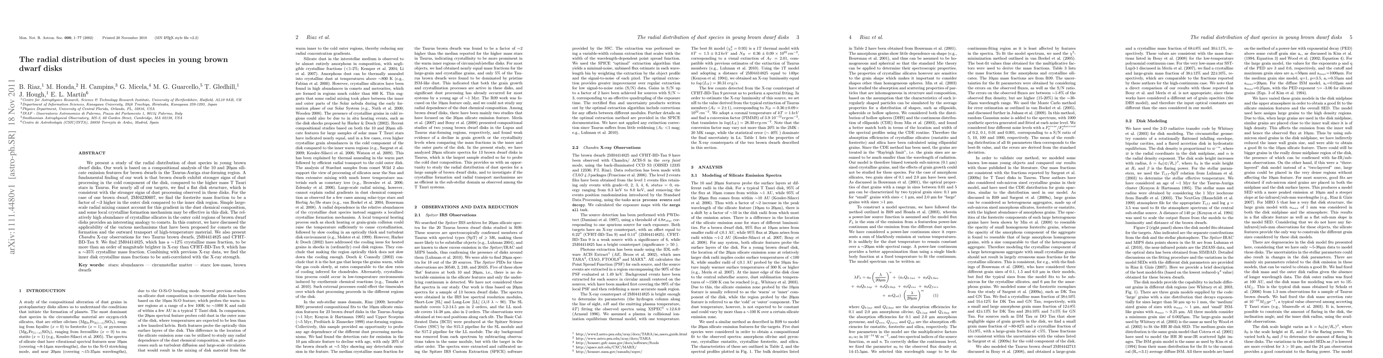 We present a study of the radial distribution of dust species in young brown dwarf disks. Our work is based on a compositional analysis of the 10 and 20 micron silicate emission features for brown dwarfs in the Taurus-Auriga star-forming region. A fundamental finding of our work is that brown dwarfs exhibit stronger signs of dust processing in the cold component of the disk, compared to the higher mass T Tauri stars in Taurus. For nearly all of our targets, we find a flat disk structure, which is consistent with the stronger signs of dust processing observed in these disks. For the case of one brown dwarf, 2M04230607, we find the forsterite mass fraction to be a factor of ~3 higher in the outer disk compared to the inner disk region. Simple large-scale radial mixing cannot account for this gradient in the dust chemical composition, and some local crystalline formation mechanism may be effective in this disk. The relatively high abundance of crystalline silicates in the outer cold regions of brown dwarf disks provides an interesting analogy to comets. In this context, we have discussed the applicability of the various mechanisms that have been proposed for comets on the formation and the outward transport of high-temperature material. We also present Chandra X-ray observations for two Taurus brown dwarfs, 2M04414825 and CFHT-BD-Tau 9. We find 2M04414825, which has a ~12% crystalline mass fraction, to be more than an order of magnitude brighter in X-ray than CFHT-BD-Tau 9, which has a ~35% crystalline mass fraction. Combining with previous X-ray data, we find the inner disk crystalline mass fractions to be anti-correlated with the X-ray strength.