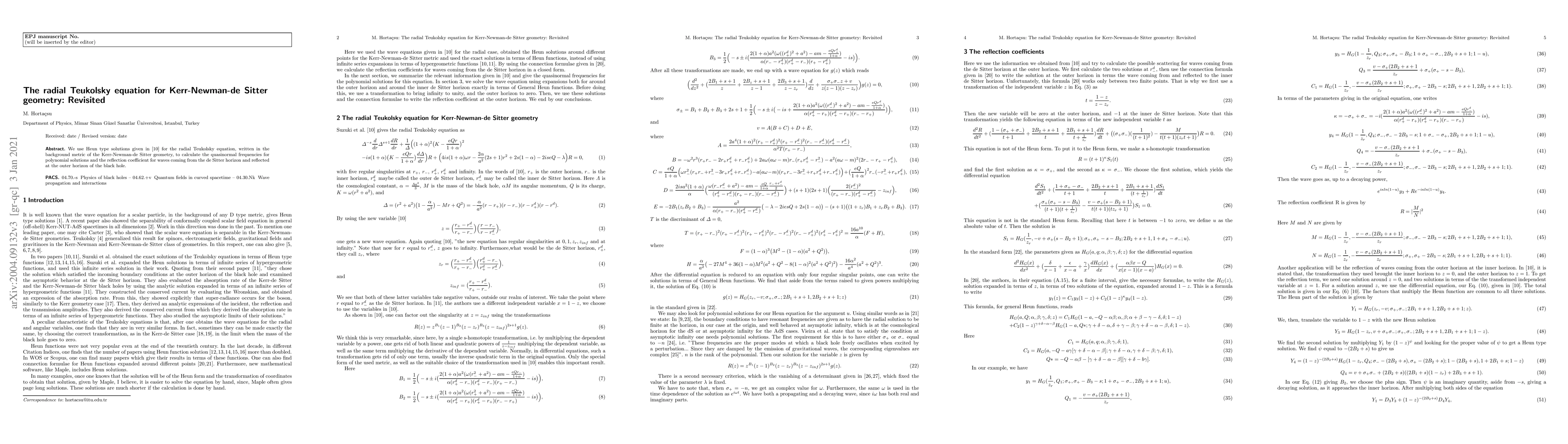 This paper revisits the radial Teukolsky equation in Kerr-Newman-de Sitter geometry, utilizing Heun type solutions to compute quasinormal frequencies for polynomial solutions and the reflection coefficient for waves reflected between the de Sitter and outer black hole horizons.
