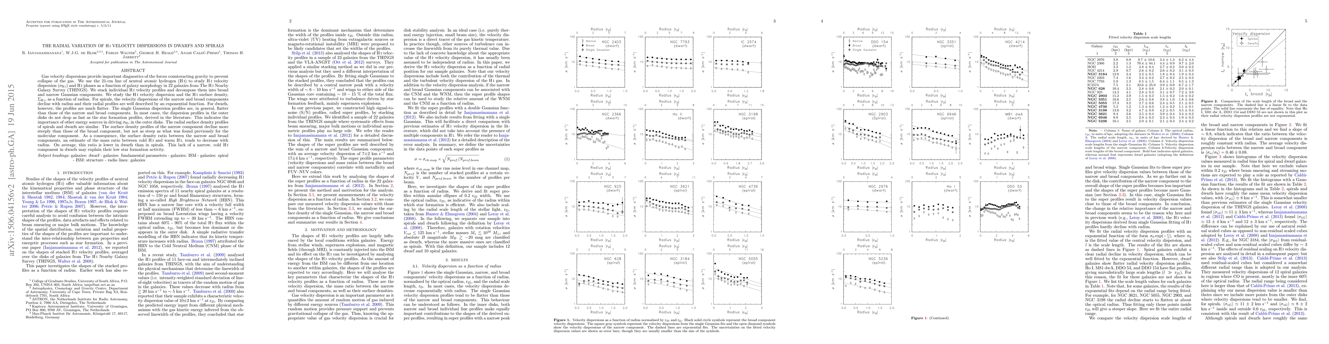 This study examines HI velocity dispersions across 22 galaxies, revealing that spiral galaxies show declining velocity dispersions with radius, while dwarf galaxies exhibit flatter profiles. The findings suggest alternative energy sources influence HI dynamics in outer disks, and the lower mass ratio of cold to warm HI in dwarfs correlates with their reduced star formation activity.