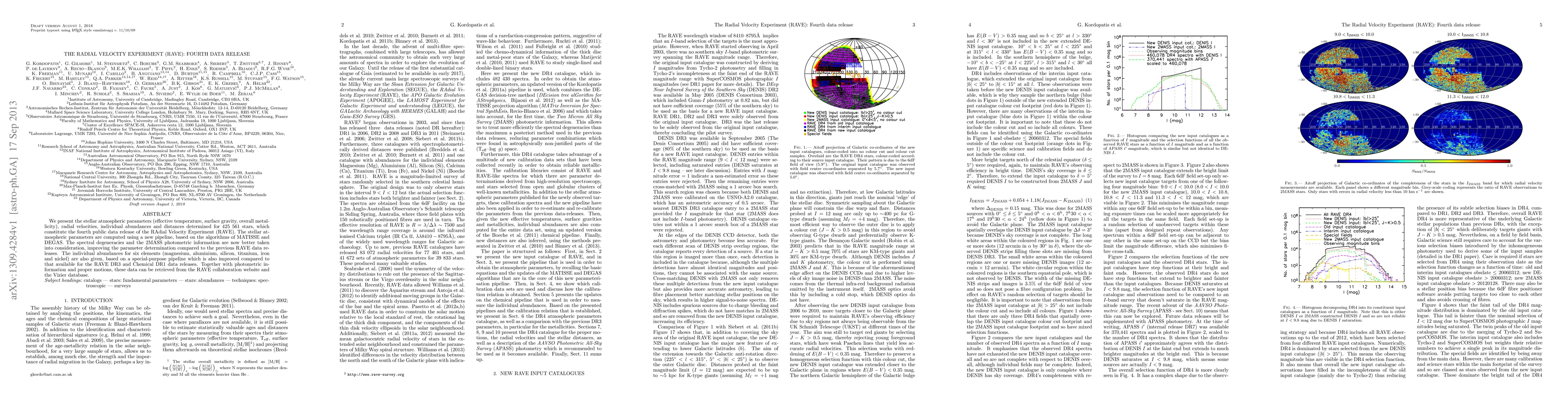The RAdial Velocity Experiment (RAVE) fourth data release provides stellar atmospheric parameters, radial velocities, individual abundances, and distances for 425,561 stars, utilizing improved algorithms and pipelines for enhanced accuracy. These data are available for public access via the RAVE collaboration website and the Vizier database.