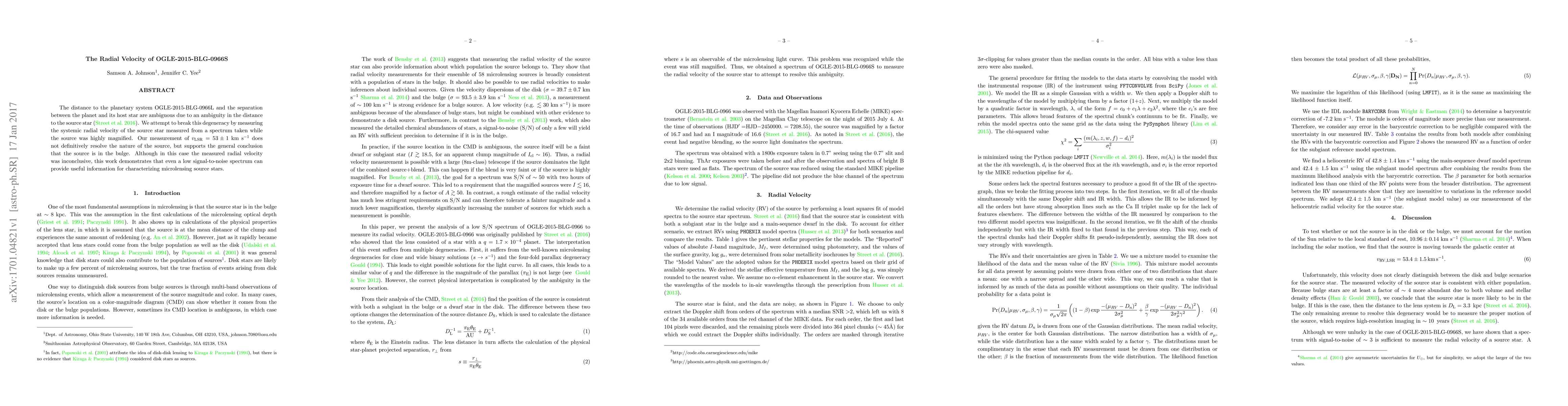 The distance to the planetary system OGLE-2015-BLG-0966L and the separation between the planet and its host star are ambiguous due to an ambiguity in the distance to the source star (Street et al. 2016). We attempt to break this degeneracy by measuring the systemic radial velocity of the source star measured from a spectrum taken while the source was highly magnified. Our measurement of v_{LSR} = 53 +/- 1 km s^{-1} does not definitively resolve the nature of the source, but supports the general conclusion that the source is in the bulge. Although in this case the measured radial velocity was inconclusive, this work demonstrates that even a low signal-to-noise spectrum can provide useful information for characterizing microlensing source stars.