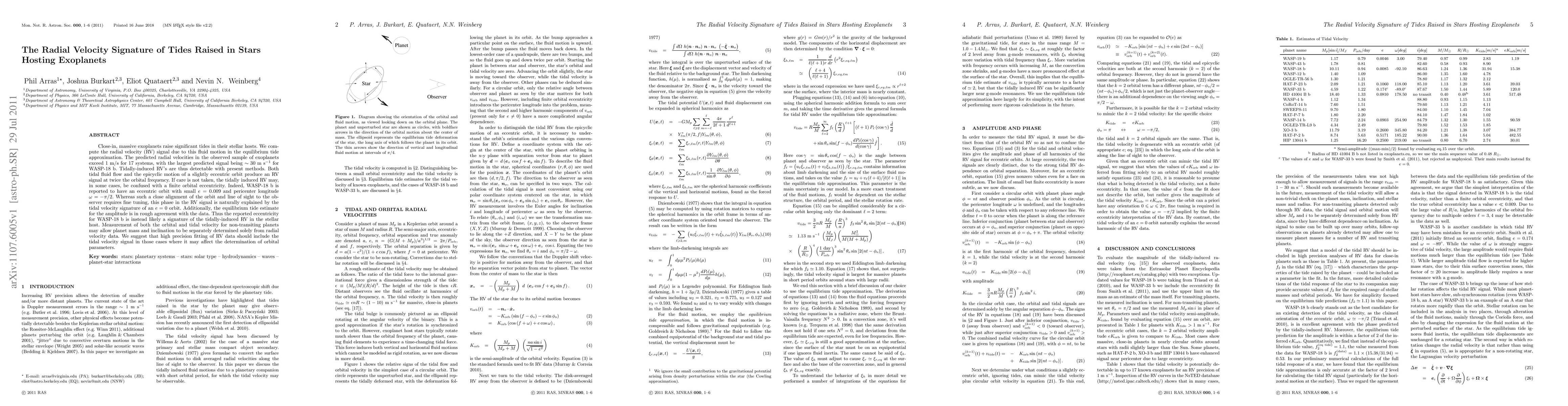 This paper investigates the radial velocity (RV) signatures of tides raised in stars hosting close-in, massive exoplanets, predicting that tidally-induced RV signals can exceed 1 m/s in some systems. It suggests that the reported eccentricity in WASP-18 b may actually be a tidal RV signature, emphasizing the need for high precision RV data fitting to account for tidal effects.