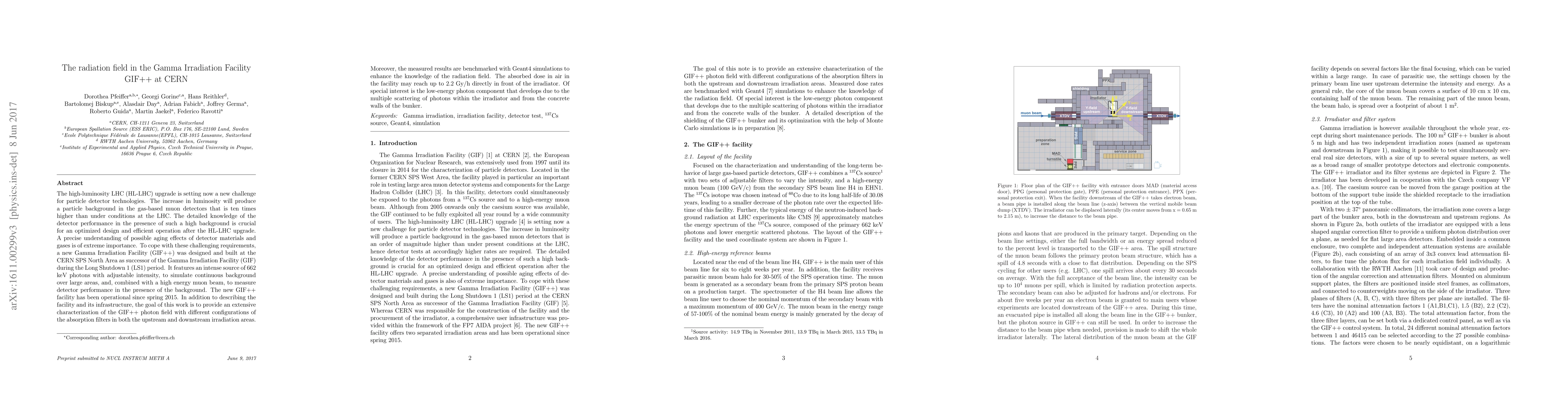 This paper describes the new Gamma Irradiation Facility (GIF++) at CERN, designed to simulate high particle backgrounds for testing gas-based muon detectors in the HL-LHC upgrade. It provides an extensive characterization of the GIF++ photon field and benchmarks measured results with Geant4 simulations to understand the radiation field, including the low-energy photon component from scattering.
