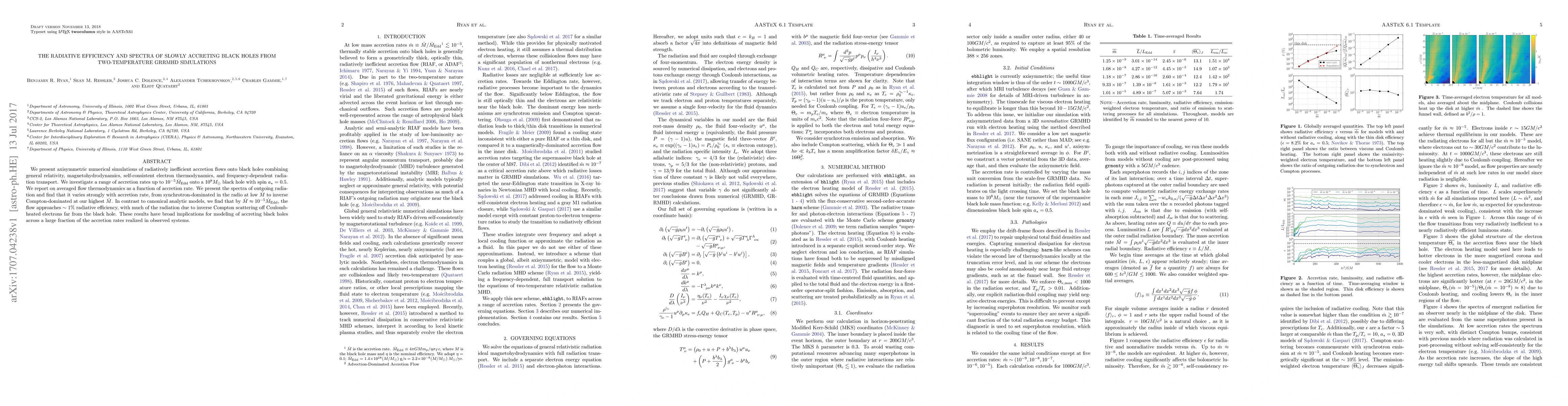 We present axisymmetric numerical simulations of radiatively inefficient accretion flows onto black holes combining general relativity, magnetohydrodynamics, self-consistent electron thermodynamics, and frequency-dependent radiation transport. We investigate a range of accretion rates up to $10^{-5} \dot{M}_{\mathrm{Edd}}$ onto a $10^8 M_{\odot}$ black hole with spin $a_{\star} = 0.5$. We report on averaged flow thermodynamics as a function of accretion rate. We present the spectra of outgoing radiation and find that it varies strongly with accretion rate, from synchrotron-dominated in the radio at low $\dot{M}$ to inverse Compton-dominated at our highest $\dot{M}$. In contrast to canonical analytic models, we find that by $\dot{M} \approx 10^{-5} \dot{M}_{\mathrm{Edd}}$, the flow approaches $\sim 1\%$ radiative efficiency, with much of the radiation due to inverse Compton scattering off Coulomb-heated electrons far from the black hole. These results have broad implications for modeling of accreting black holes across a large fraction of the accretion rates realized in observed systems.