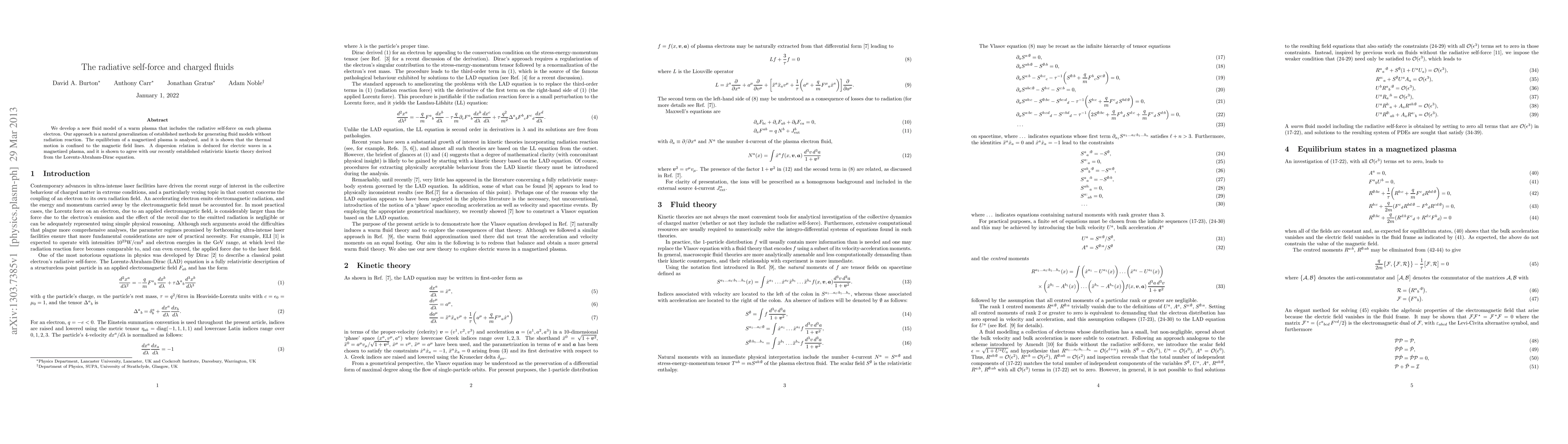 We develop a new fluid model of a warm plasma that includes the radiative self-force on each plasma electron. Our approach is a natural generalization of established methods for generating fluid models without radiation reaction. The equilibrium of a magnetized plasma is analysed, and it is shown that the thermal motion is confined to the magnetic field lines. A dispersion relation is deduced for electric waves in a magnetized plasma, and it is shown to agree with our recently established relativistic kinetic theory derived from the Lorentz-Abraham-Dirac equation.