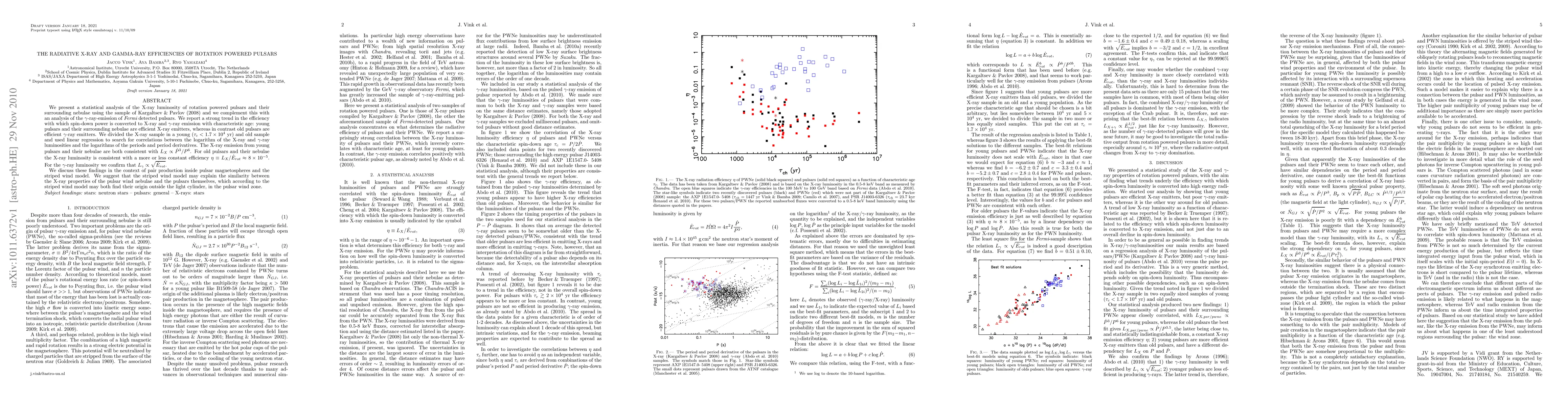 New research on rotation-powered pulsars reveals a strong correlation between young pulsar age and efficiency in converting spin-down power to X-ray and gamma-ray emission, with old pulsars being more efficient gamma-ray emitters.