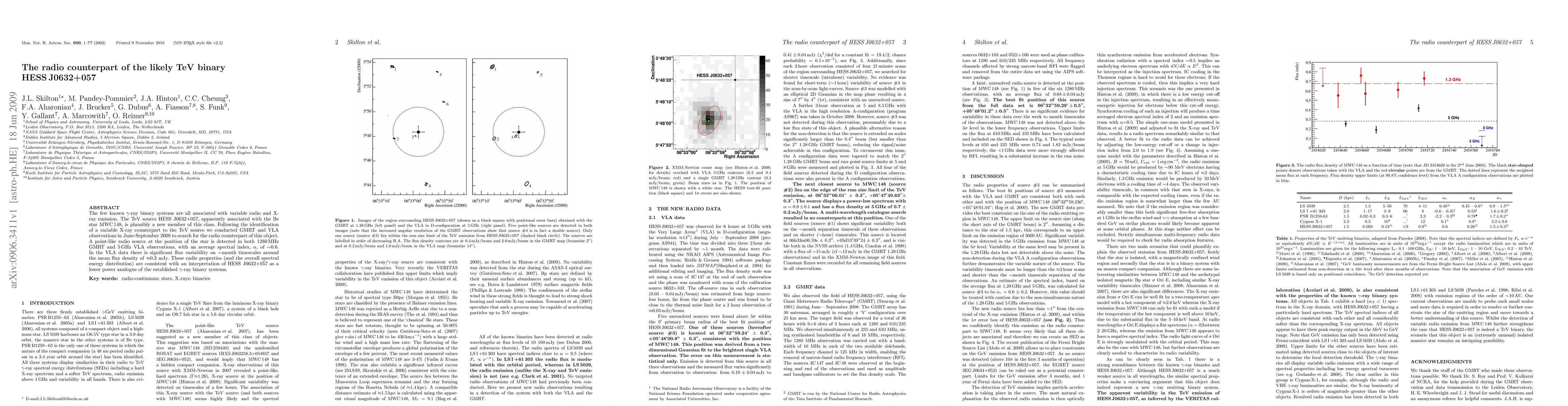 A radio counterpart to the TeV binary HESS J0632+057 has been detected, showing variable flux on monthly timescales. This discovery suggests HESS J0632+057 is a lower power analogue of established gamma-ray binary systems.