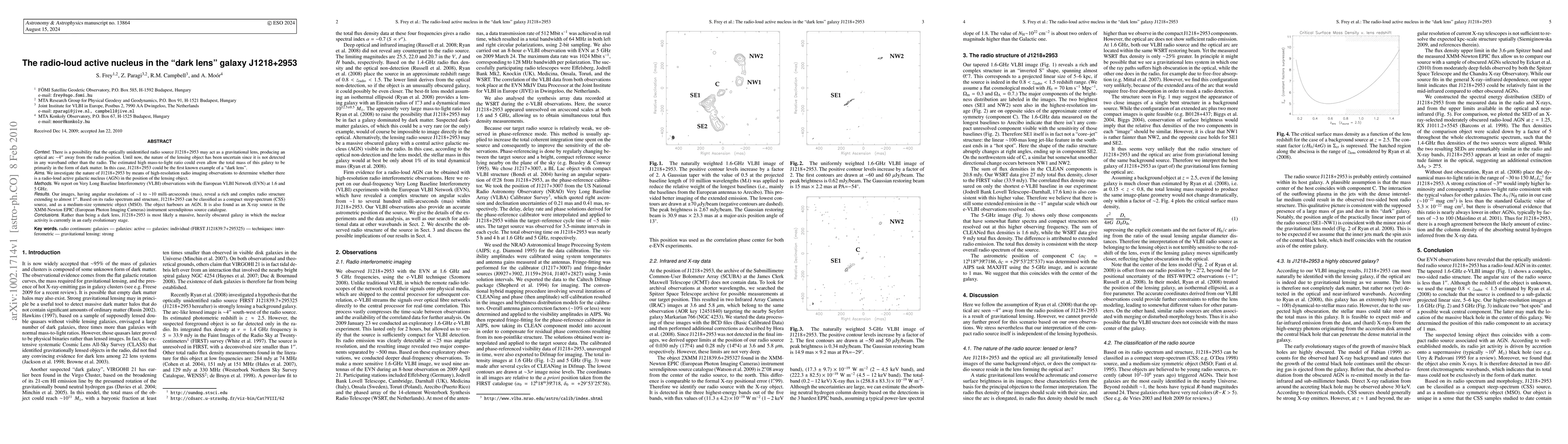 Context: There is a possibility that the optically unidentified radio source J1218+2953 may act as a gravitational lens, producing an optical arc ~4" away from the radio position. Until now, the nature of the lensing object has been uncertain since it is not detected in any waveband other than the radio. The estimated high mass-to-light ratio could even allow the total mass of this galaxy to be primarily in the form of dark matter. In this case, J1218+2953 could be the first known example of a "dark lens". Aims: We investigate the nature of J1218+2953 by means of high-resolution radio imaging observations to determine whether there is a radio-loud active galactic nucleus (AGN) in the position of the lensing object. Methods: We report on Very Long Baseline Interferometry (VLBI) observations with the European VLBI Network (EVN) at 1.6 and 5 GHz. Results: Our images, having angular resolutions of ~1 to ~10 milli-arcseconds (mas), reveal a rich and complex radio structure extending to almost 1". Based on its radio spectrum and structure, J1218+2953 can be classified as a compact steep-spectrum (CSS) source, and as a medium-size symmetric object (MSO). The object harbours an AGN. It is also found as an X-ray source in the XMM-Newton EPIC (European Photon Imaging Cameras) instrument serendipitous source catalogue. Conclusions: Rather than being a dark lens, J1218+2953 is most likely a massive, heavily obscured galaxy in which the nuclear activity is currently in an early evolutionary stage.
