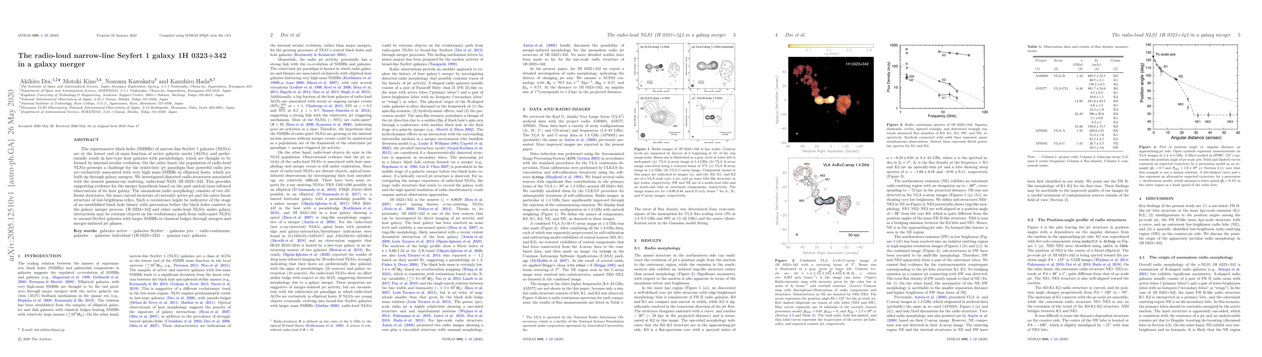 A study of the galaxy 1H 0323+342 finds distorted radio structures indicating a merger process between its supermassive black hole and host galaxy, challenging current theories about powerful jets and black hole mass.