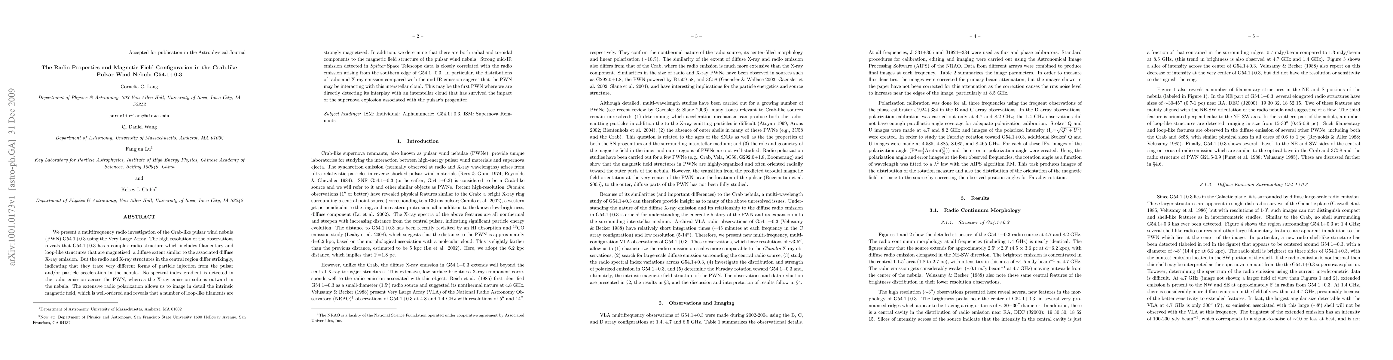 Researchers studied the Crab-like pulsar wind nebula G54.1+0.3 using radio observations, revealing a complex structure with magnetized filaments and different forms of particle injection from the pulsar and/or acceleration in the nebula.