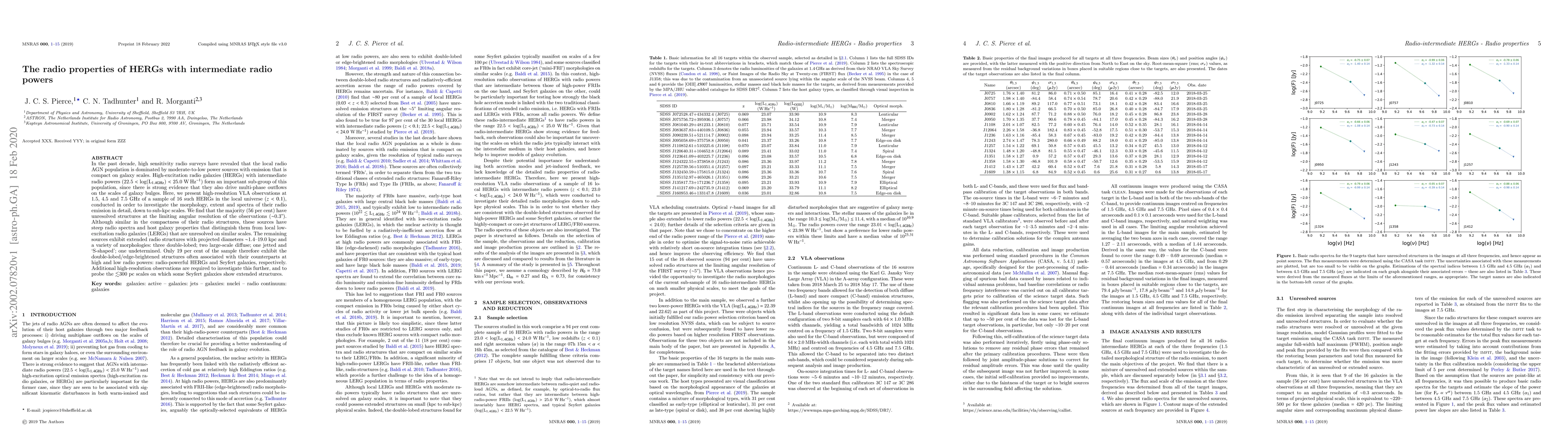 In the past decade, high sensitivity radio surveys have revealed that the local radio AGN population is dominated by moderate-to-low power sources with emission that is compact on galaxy scales. High-excitation radio galaxies (HERGs) with intermediate radio powers (22.5 $<$ log(L$_{\rm 1.4GHz}$) $<$ 25.0 W Hz$^{-1}$) form an important sub-group of this population, since there is strong evidence that they also drive multi-phase outflows on the scales of galaxy bulges. Here, we present high-resolution VLA observations at 1.5, 4.5 and 7.5 GHz of a sample of 16 such HERGs in the local universe ($z<0.1$), conducted in order to investigate the morphology, extent and spectra of their radio emission in detail, down to sub-kpc scales. We find that the majority (56 per cent) have unresolved structures at the limiting angular resolution of the observations ($\sim$0.3"). Although similar in the compactness of their radio structures, these sources have steep radio spectra and host galaxy properties that distinguish them from local low-excitation radio galaxies (LERGs) that are unresolved on similar scales. The remaining sources exhibit extended radio structures with projected diameters $\sim$1.4$-$19.0 kpc and a variety of morphologies: three double-lobed; two large-scale diffuse; one jetted and `S-shaped'; one undetermined. Only 19 per cent of the sample therefore exhibit the double-lobed/edge-brightened structures often associated with their counterparts at high and low radio powers: radio-powerful HERGs and Seyfert galaxies, respectively. Additional high-resolution observations are required to investigate this further, and to probe the $\lesssim$300 pc scales on which some Seyfert galaxies show extended structures.