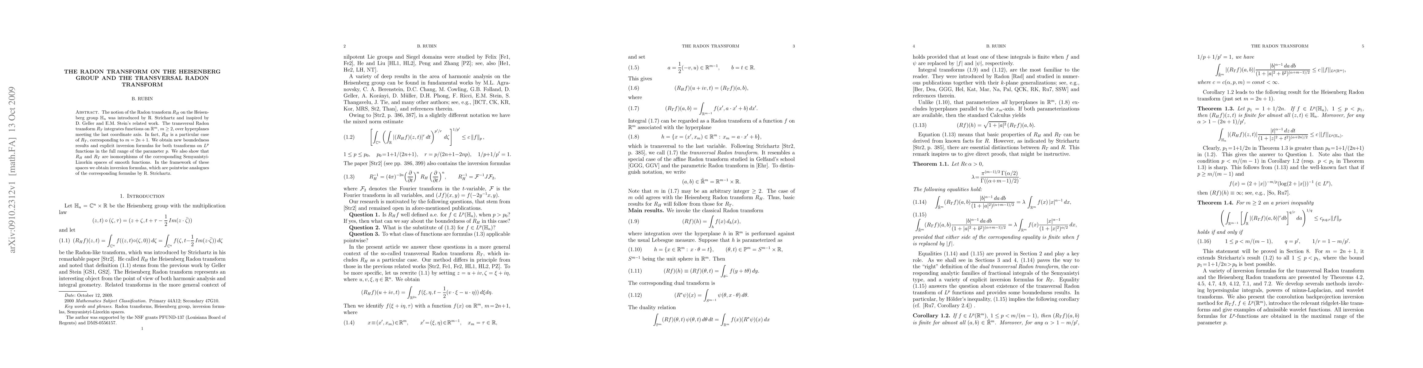 The research employs advanced techniques in harmonic analysis, specifically focusing on the Radon transform on the Heisenberg group and its transversal counterpart. It derives new boundedness results and explicit inversion formulas for these transforms on L^p functions across the full range of the parameter p, and establishes these transforms as isomorphisms on Semyanistyi-Lizorkin spaces.
