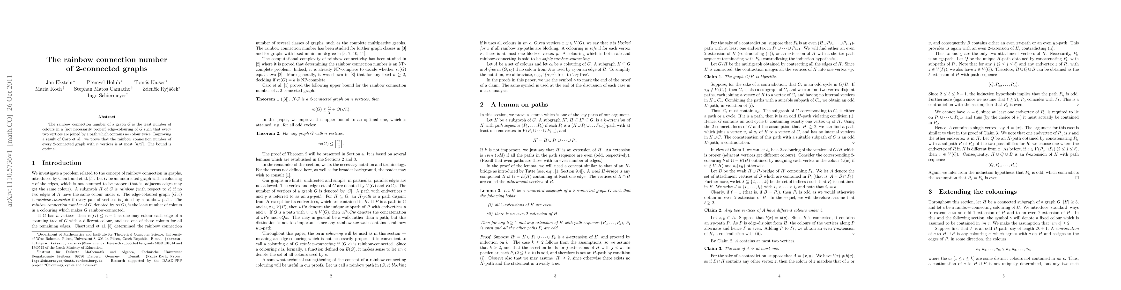This paper proves that the rainbow connection number of any 2-connected graph with n vertices is at most n/2, improving upon previous results. The bound is shown to be optimal.