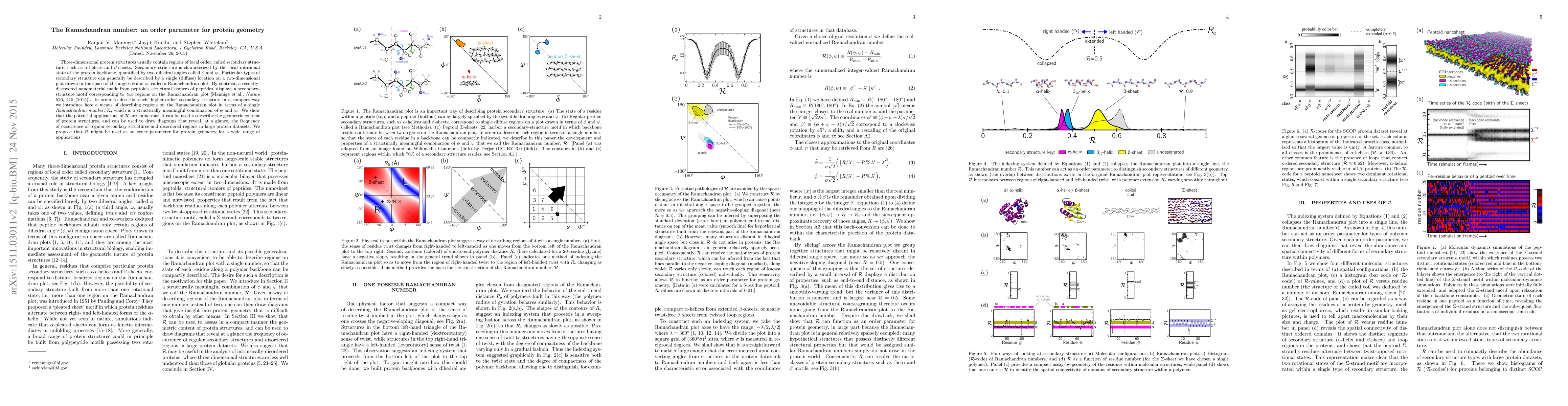 Three-dimensional protein structures usually contain regions of local order, called secondary structure, such as $\alpha$-helices and $\beta$-sheets. Secondary structure is characterized by the local rotational state of the protein backbone, quantified by two dihedral angles called $\phi$ and $\psi$. Particular types of secondary structure can generally be described by a single (diffuse) location on a two-dimensional plot drawn in the space of the angles $\phi$ and $\psi$, called a Ramachandran plot. By contrast, a recently-discovered nanomaterial made from peptoids, structural isomers of peptides, displays a secondary-structure motif corresponding to two regions on the Ramachandran plot [Mannige et al., Nature 526, 415 (2015)]. In order to describe such `higher-order' secondary structure in a compact way we introduce here a means of describing regions on the Ramachandran plot in terms of a single Ramachandran number, ${\mathcal{R}}$, which is a structurally meaningful combination of $\phi$ and $\psi$. We show that the potential applications of ${\mathcal{R}}$ are numerous: it can be used to describe the geometric content of protein structures, and can be used to draw diagrams that reveal, at a glance, the frequency of occurrence of regular secondary structures and disordered regions in large protein datasets. We propose that ${\mathcal{R}}$ might be used as an order parameter for protein geometry for a wide range of applications.