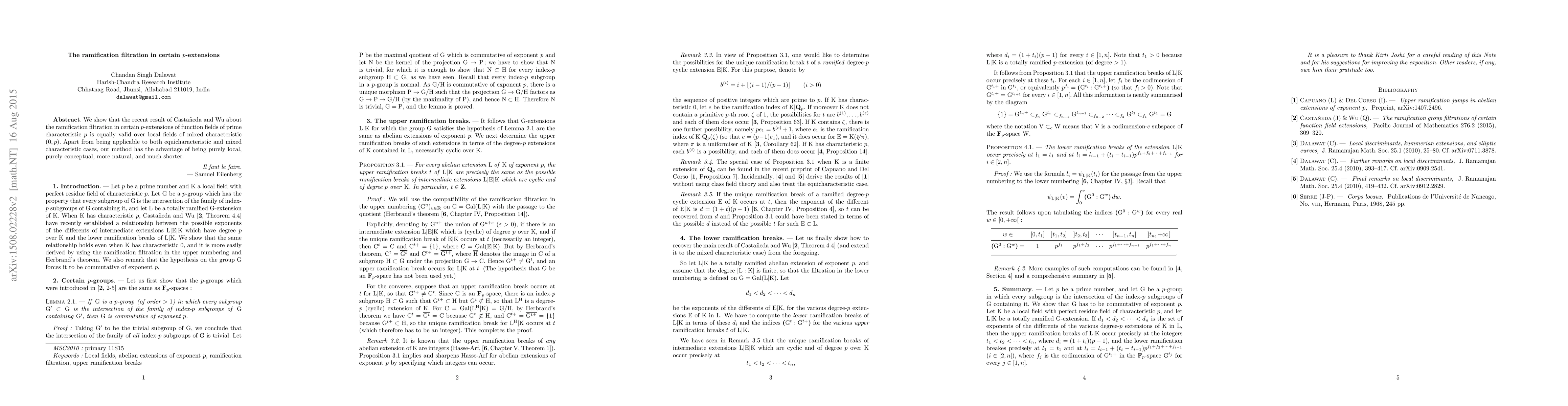 We show that the recent result of Casta\~neda and Wu about the ramification filtration in certain $p$-extensions of function fields of prime characteristic $p$ is equally valid over local fields of mixed characteristic $(0,p)$. Apart from being applicable to both equicharacteristic and mixed characteristic cases, our method has the advantage of being purely local, purely conceptual, more natural, and much shorter.