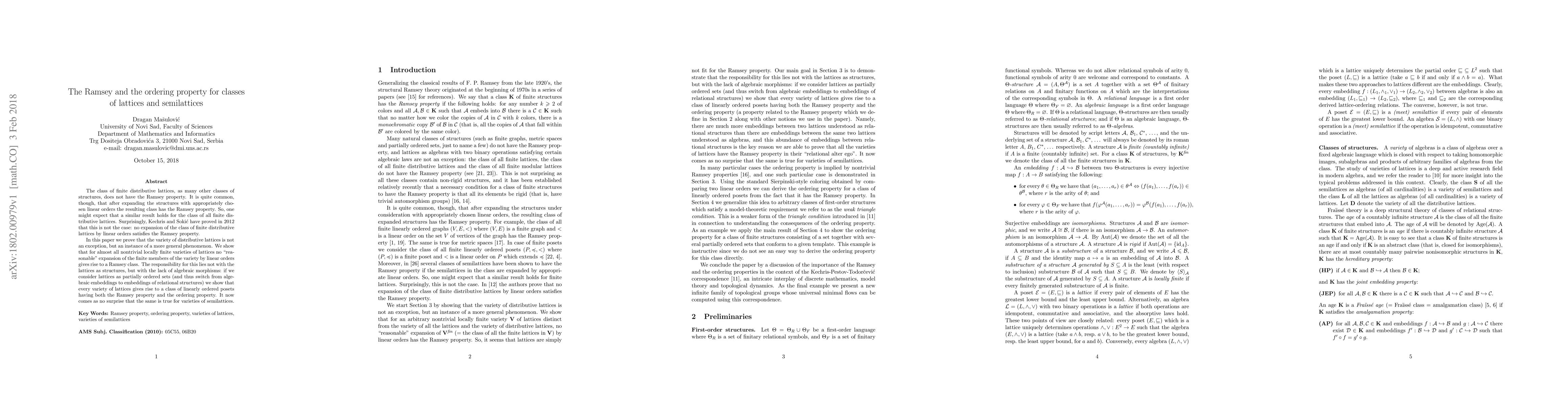The class of finite distributive lattices, as many other classes of structures, does not have the Ramsey property. It is quite common, though, that after expanding the structures with appropriately chosen linear orders the resulting class has the Ramsey property. So, one might expect that a similar result holds for the class of all finite distributive lattices. Surprisingly, Kechris and Soki\'c have proved in 2012 that this is not the case: no expansion of the class of finite distributive lattices by linear orders satisfies the Ramsey property. In this paper we prove that the variety of distributive lattices is not an exception, but an instance of a more general phenomenon. We show that for almost all nontrivial locally finite varieties of lattices no "reasonable" expansion of the finite members of the variety by linear orders gives rise to a Ramsey class. The responsibility for this lies not with the lattices as structures, but with the lack of algebraic morphisms: if we consider lattices as partially ordered sets (and thus switch from algebraic embeddings to embeddings of relational structures) we show that every variety of lattices gives rise to a class of linearly ordered posets having both the Ramsey property and the ordering property. It now comes as no surprise that the same is true for varieties of semilattices.