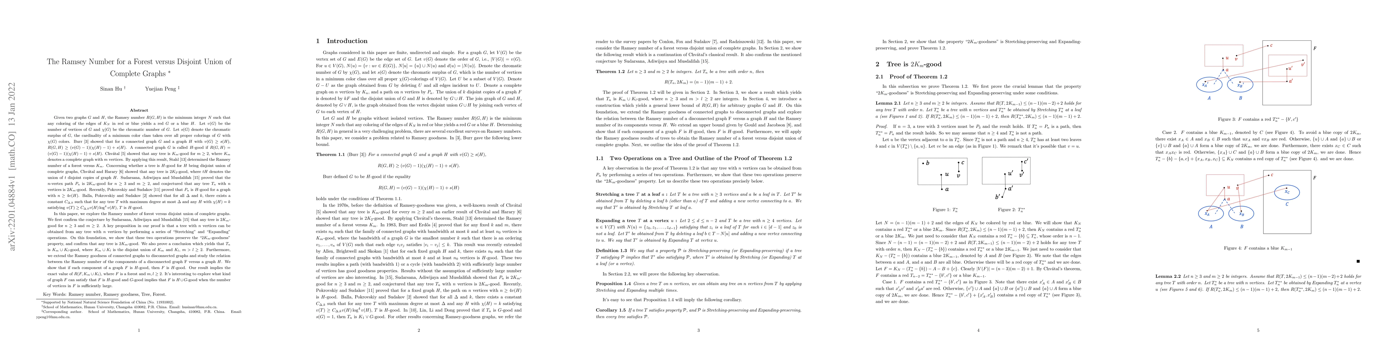 This paper investigates the Ramsey number $R(G,H)$ for a tree $T_n$ versus the disjoint union of complete graphs $K_m \cup K_l$. It confirms that $T_n$ is $K_m \cup K_l$-good, meaning the Ramsey number $R(T_n, K_m \cup K_l)$ equals $(n-1)(m+l-1)+1$.